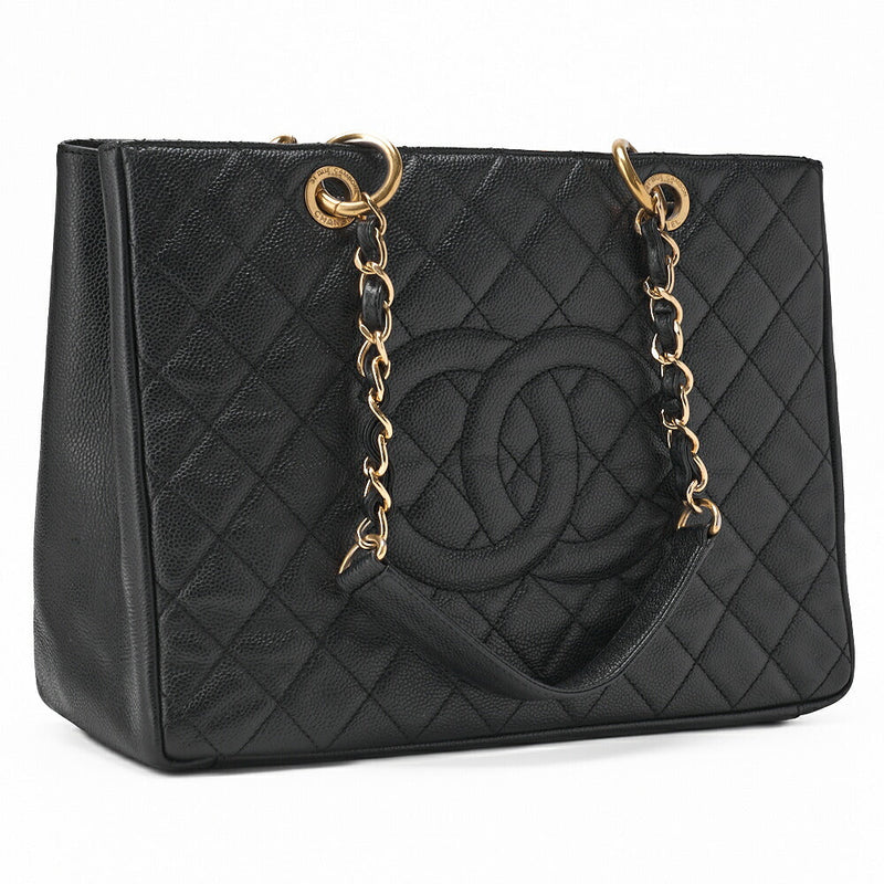 Pre-Owned Schultertasche Tote Bag Matelassé Caviar Skin Schwarz Goldfarbene Hardware Pre-Owned