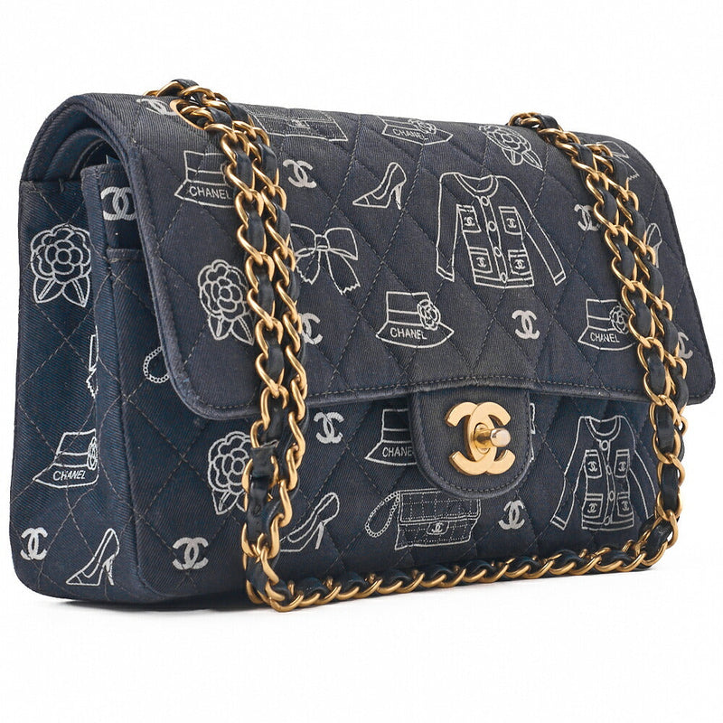 Pre-Owned Schultertasche, Matelasse W Flap 25 Icon Print, Canvas, Schwarz, Goldfarbene Hardware, Pre-Owned
