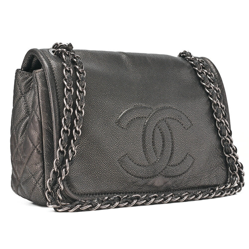 Pre-Owned Matelassé Coco Mark Chain Shoulder Soft Caviar Skin Silver-Tone Hardware, Pre-Owned