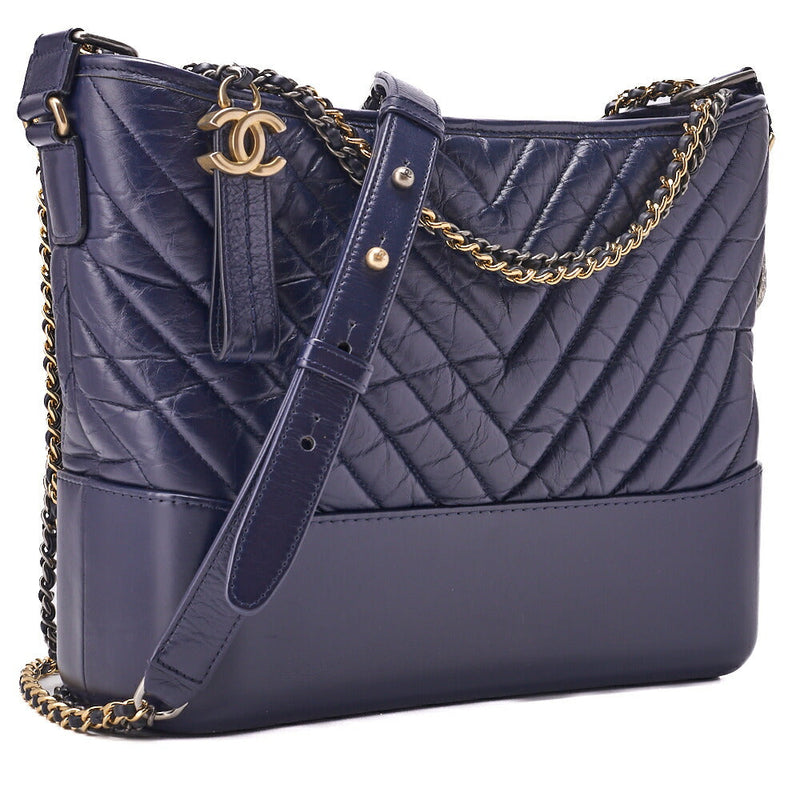 Pre-Owned Chain Shoulder Bag Matelassé Gabrielle de Navy Silver Gold-Tone Hardware, Pre-Owned