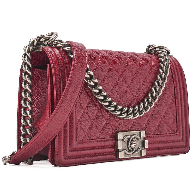 Pre-Owned Boy Matelassé Chain Shoulder Caviar Skin Red Silver-Tone Hardware, Pre-Owned