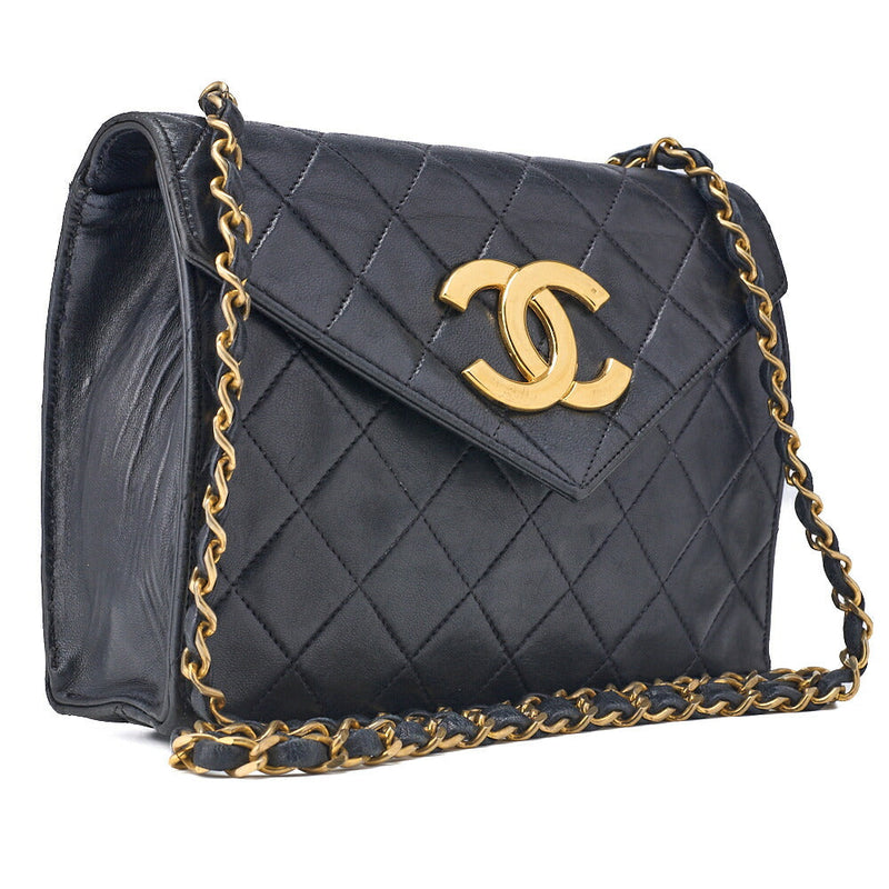 Pre-Owned Schultertasche Matelassé Lammleder Schwarz Goldfarbene Hardware Pre-Owned
