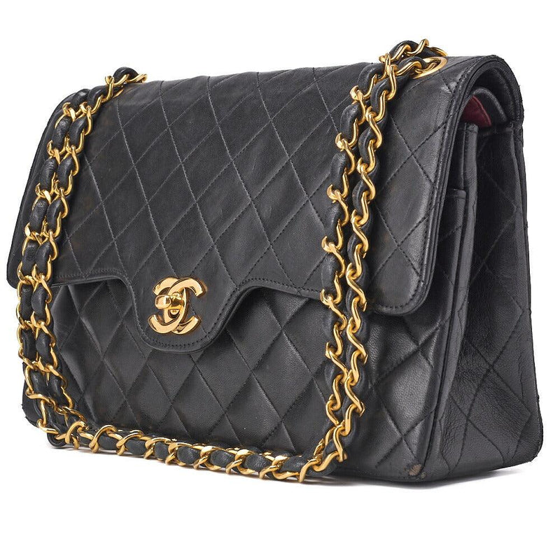Pre-Owned Schultertasche, Matelassé Doppelklappe, Lammleder, Schwarz, Goldfarbene Hardware, Pre-Owned