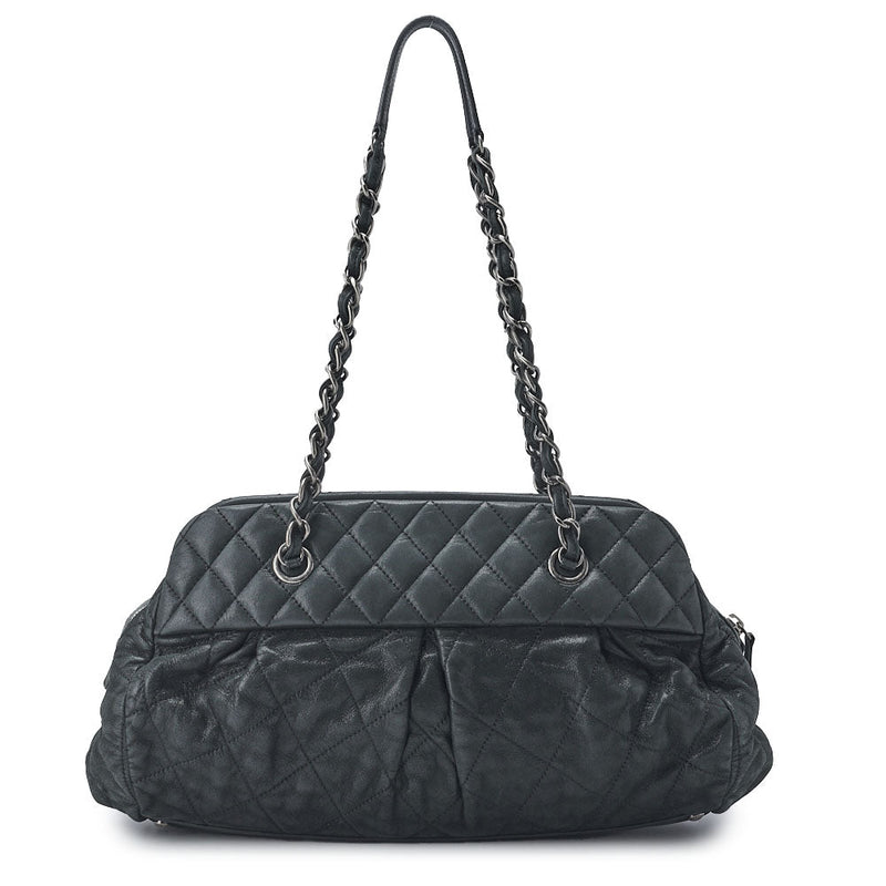 Gebrauchte Umhängetasche, Coco Mark, Matelassé, Glitzerleder, Schwarz, Silberfarbene Metallteile, Gebraucht