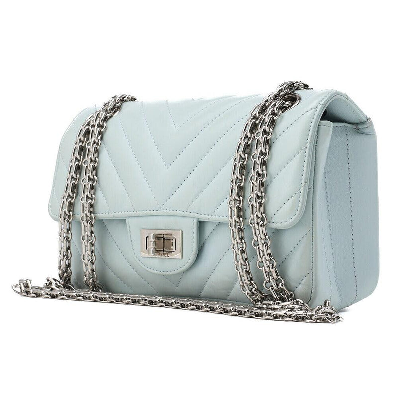 Gebrauchte Umhängetasche, V-Stich 2,55 Schlosskette, Kalbsleder, Hellblau, Silberfarbene Metallteile, Gebraucht