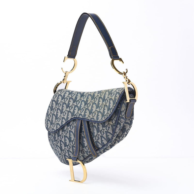 Gebrauchte Trotter Satteltasche Canvas, Leder, Marineblau, goldfarbene Metallteile, Gebraucht