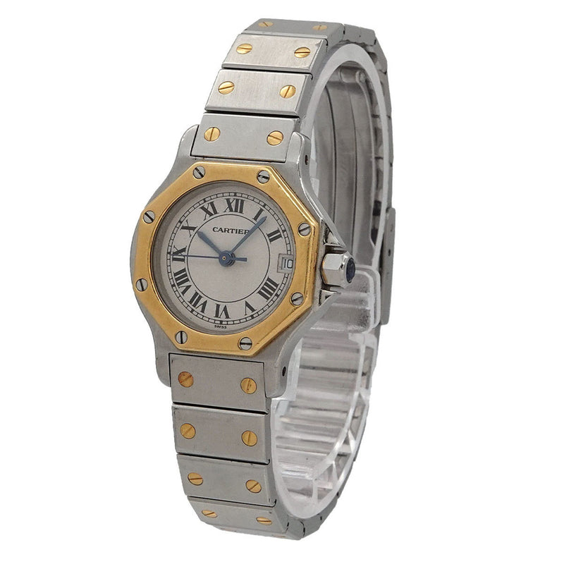 Pre-Owned Cartier Santos Octagon SM Two-tone Watch W2001683 Women's with Date Display, Ivory and Yellow Gold Quartz Movement