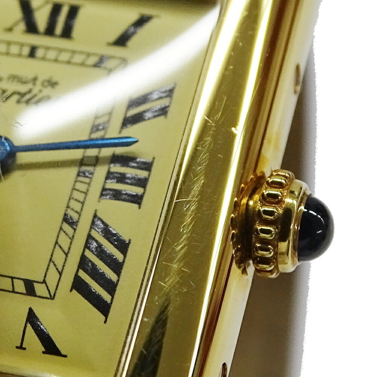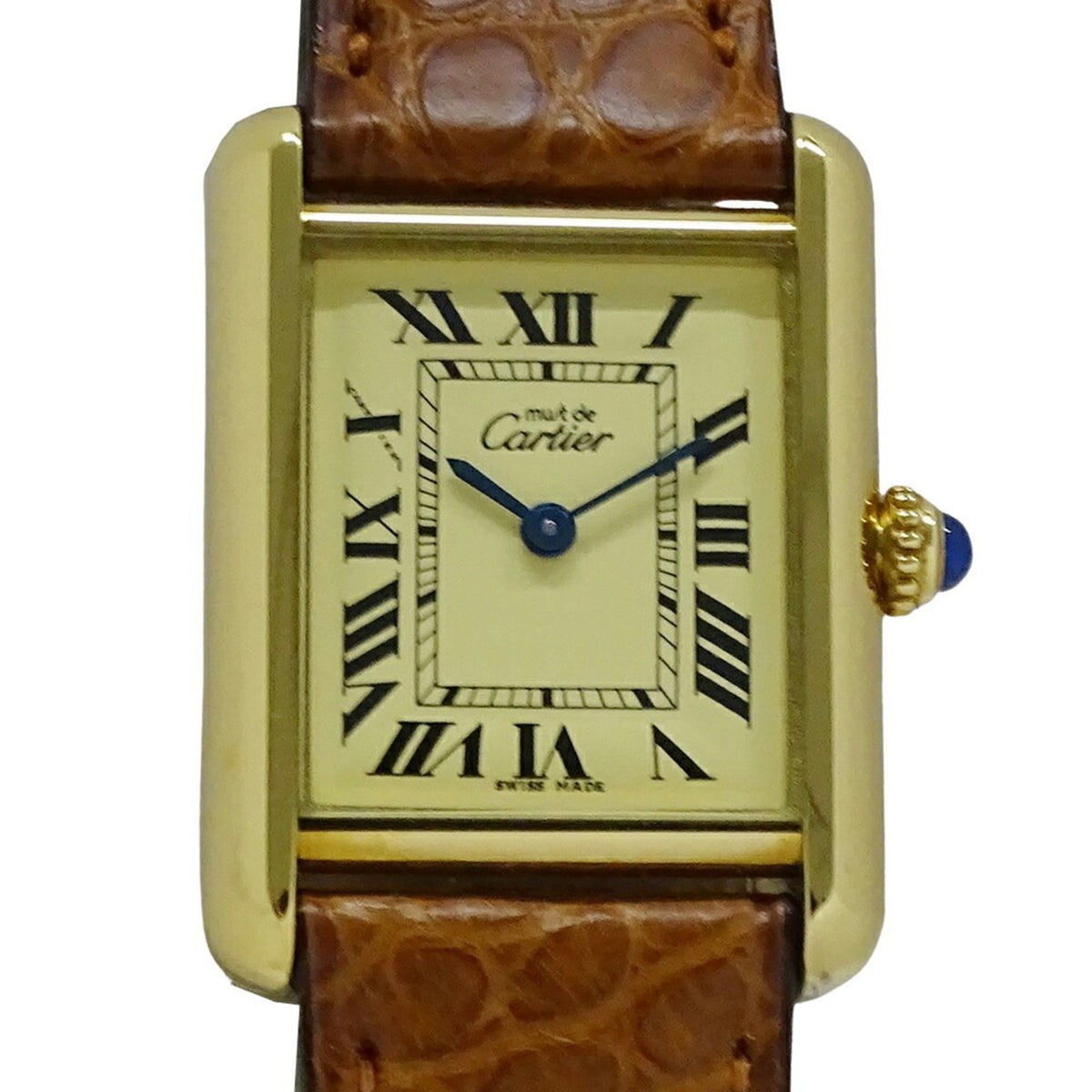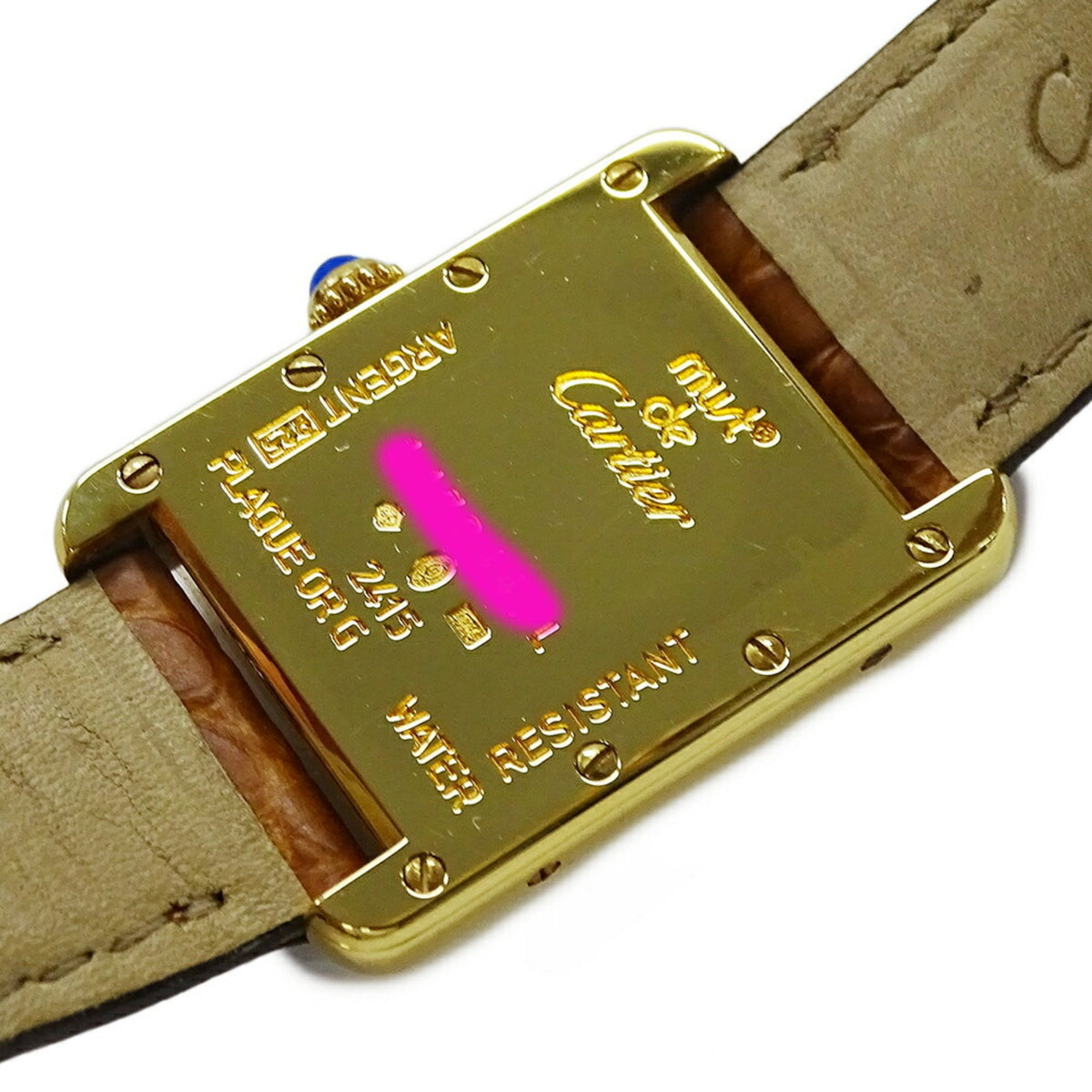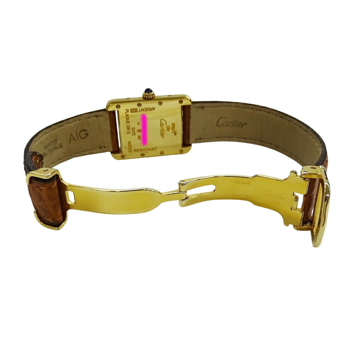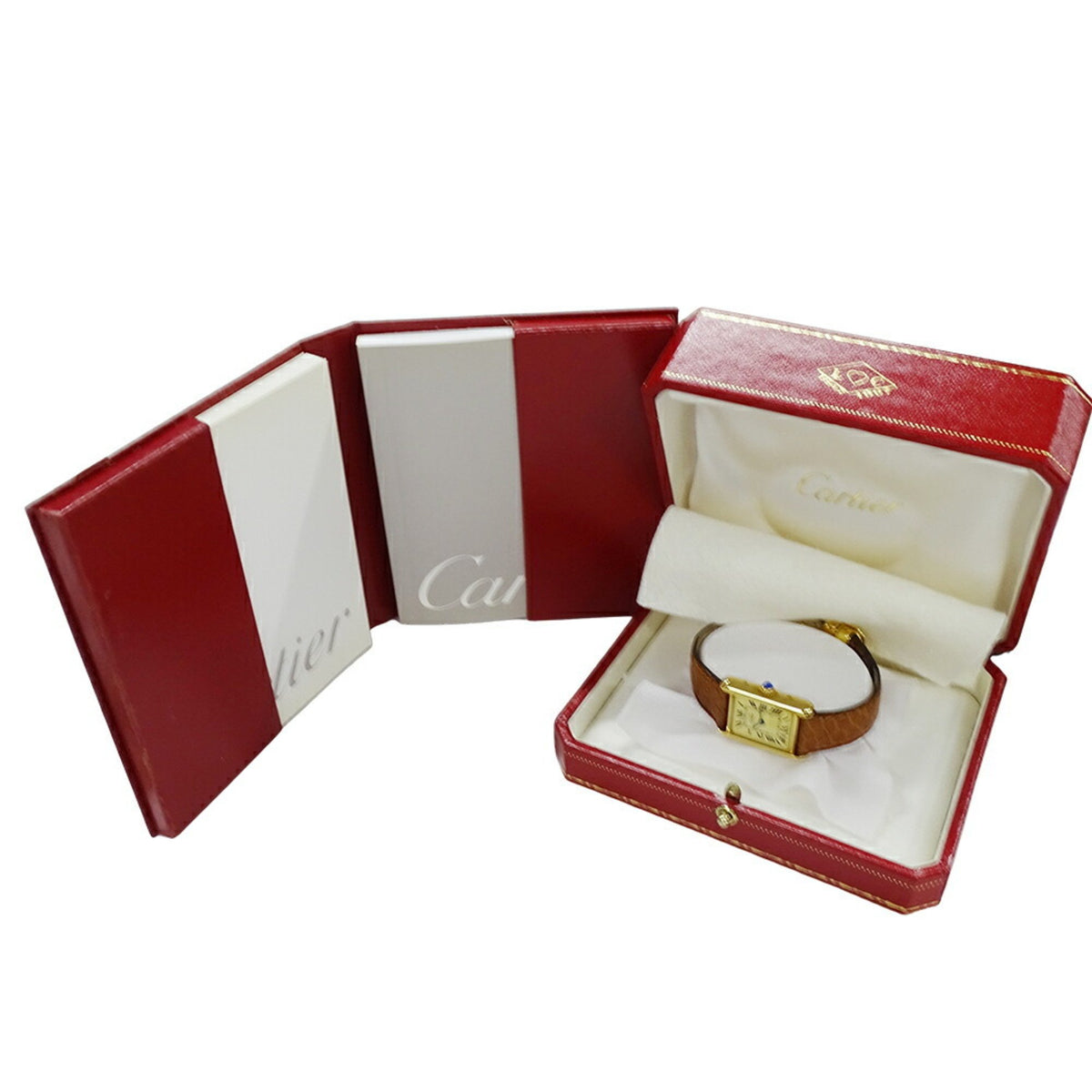 Gebrauchte Cartier Damenuhr Must Tank SM Vermeil Quarz 925 Leder W1017354 Quadratisch