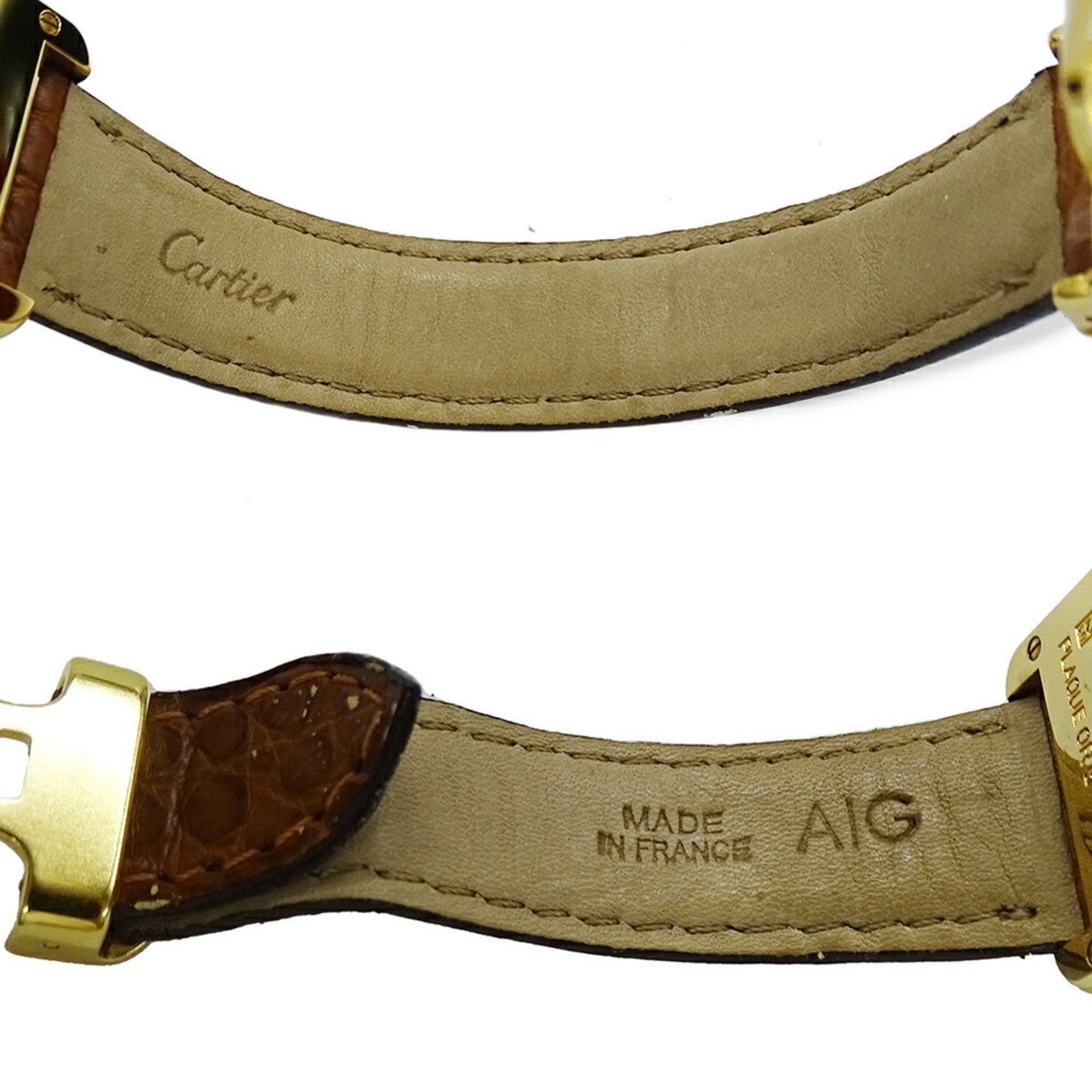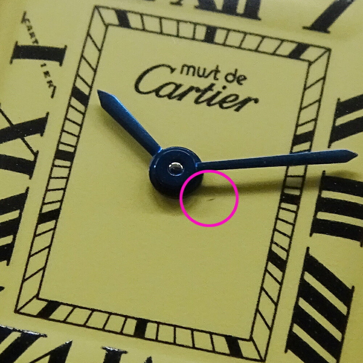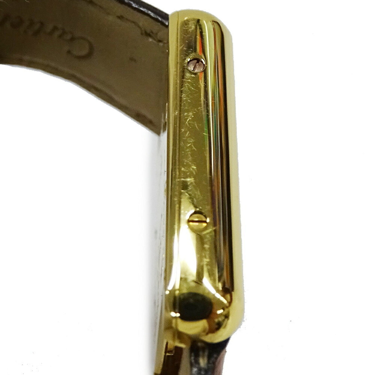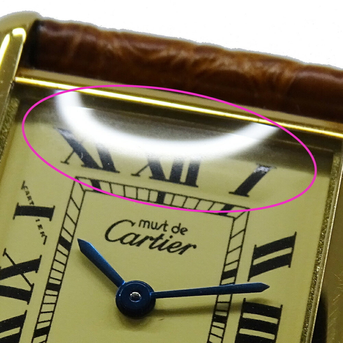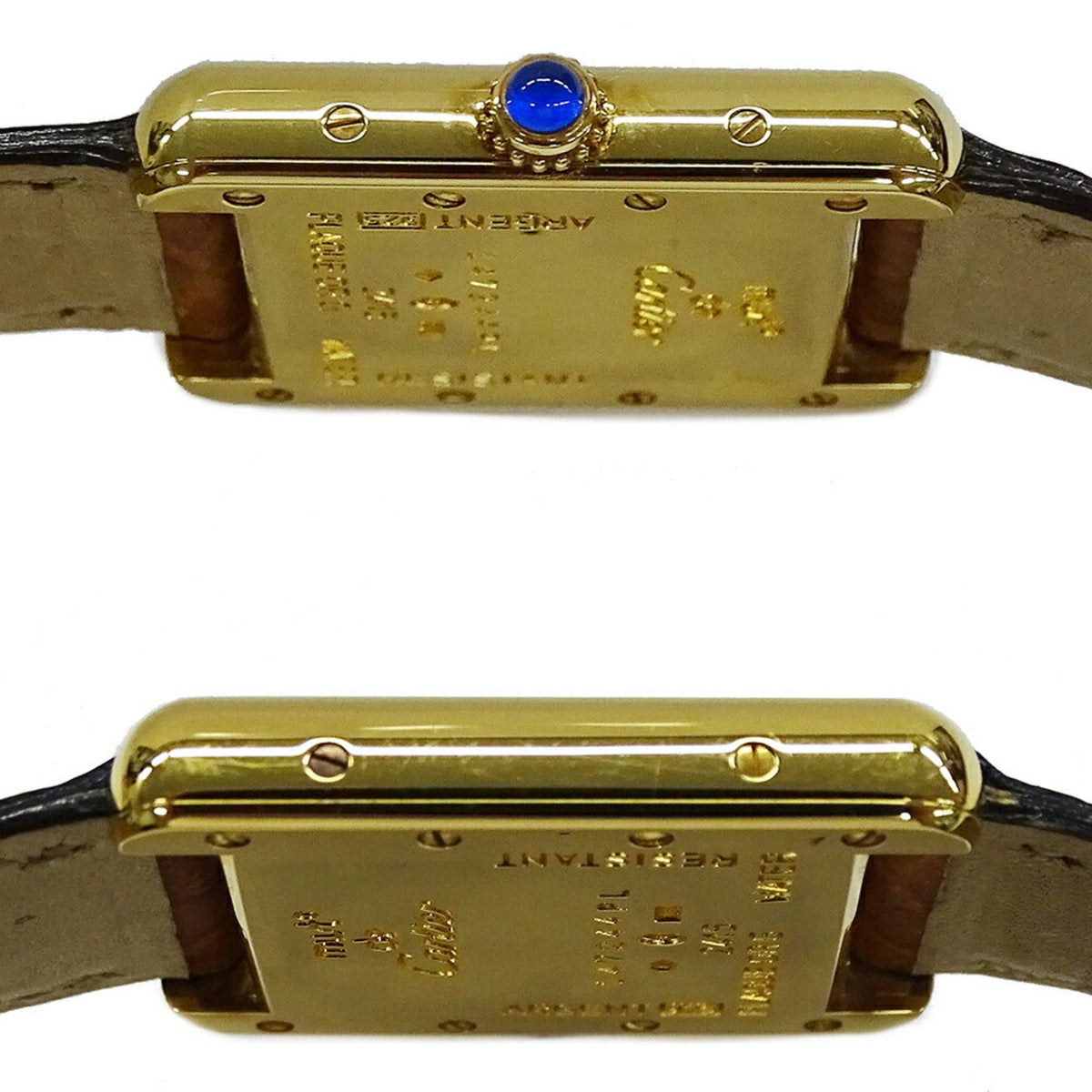 Gebrauchte Cartier Damenuhr Must Tank SM Vermeil Quarz 925 Leder W1017354 Quadratisch