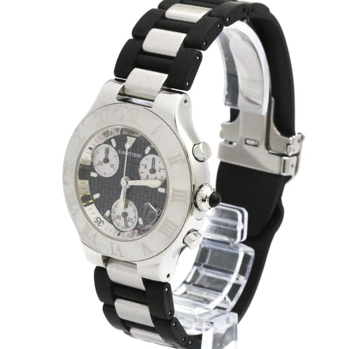 Pre-Owned CARTIER Must 21 Chronoscaph Steel Quartz Mens Watch W10125U2 Polished
