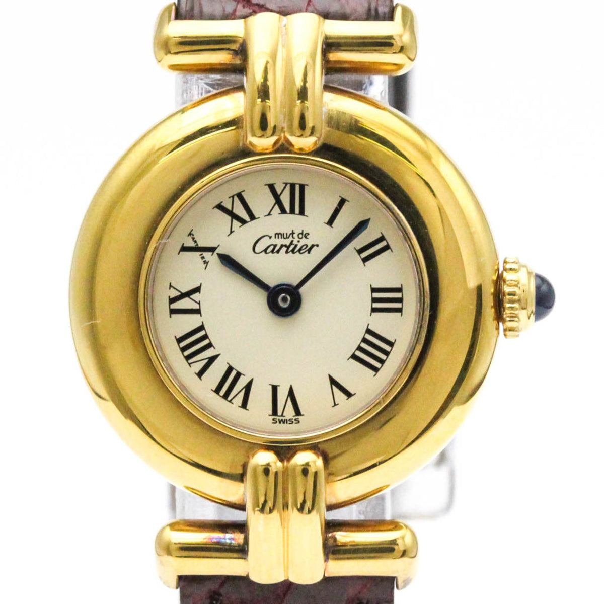 Pre-Owned CARTIER Must Colisee Gold Plated Leather Quartz Ladies Watch 590002