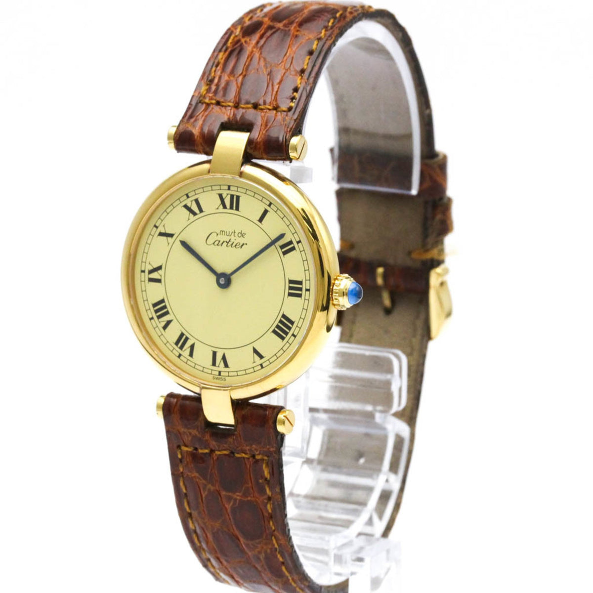Pre-Owned CARTIER Must Vendome Gold Plated Leather Quartz Unisex Watch 590003
