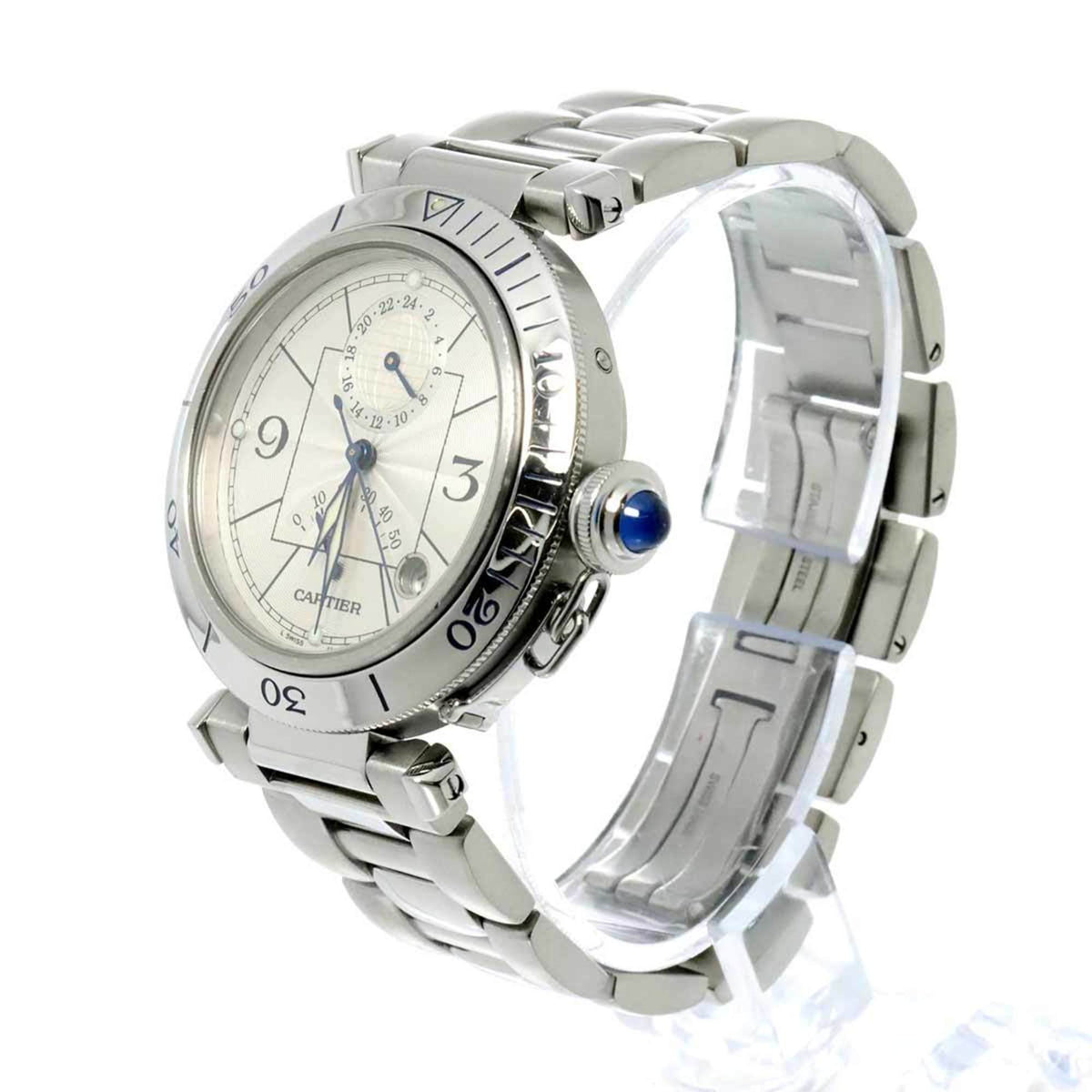 Gebrauchte Cartier Pasha 38mm GMT W31037H3 Herrenuhr Datum Silber Automatik