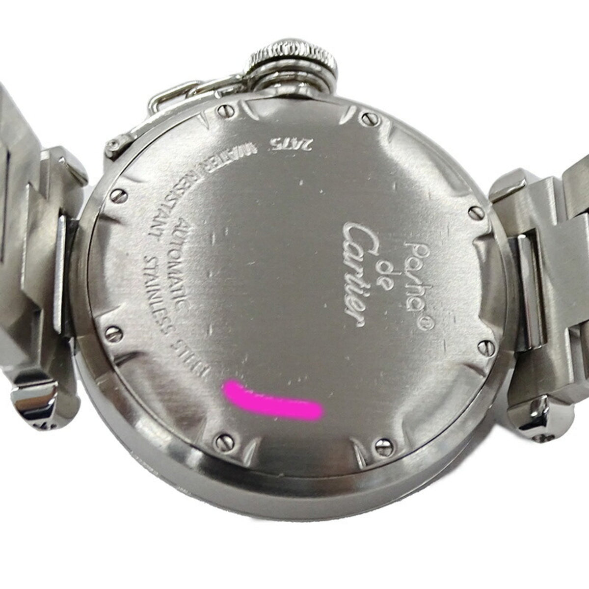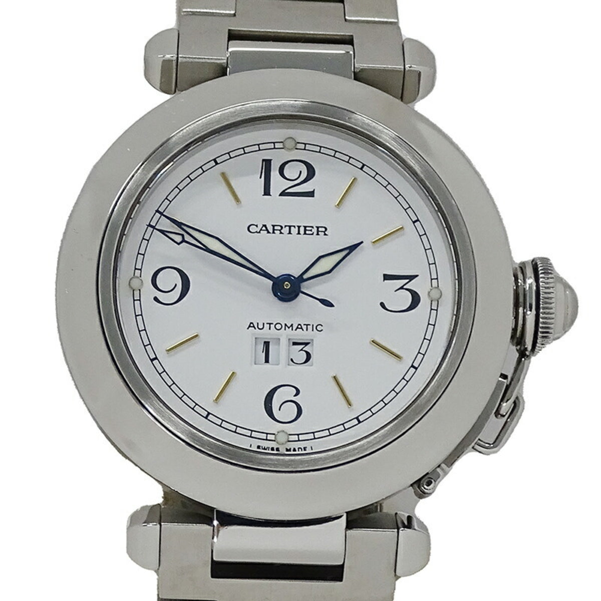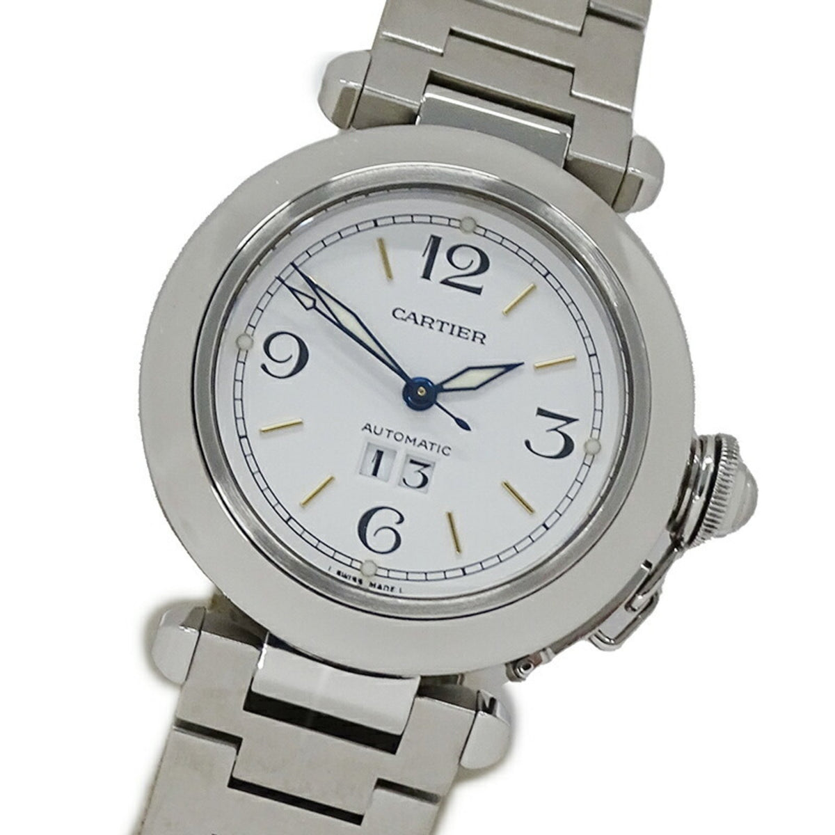 Gebrauchte Cartier Pasha C Big Date Automatikuhr für Jungen AT Edelstahl SS W31044M7 Silber Weiß Poliert