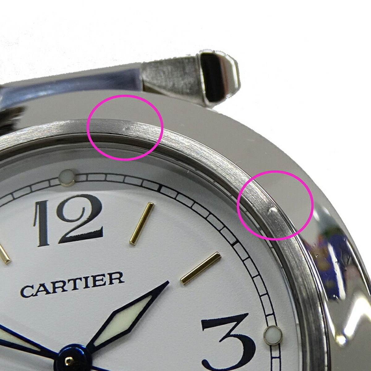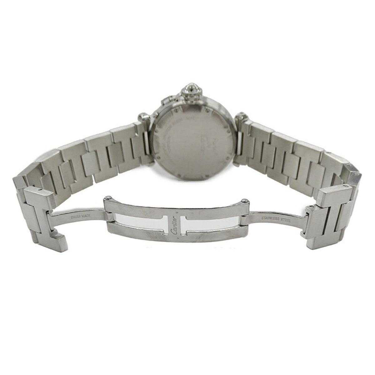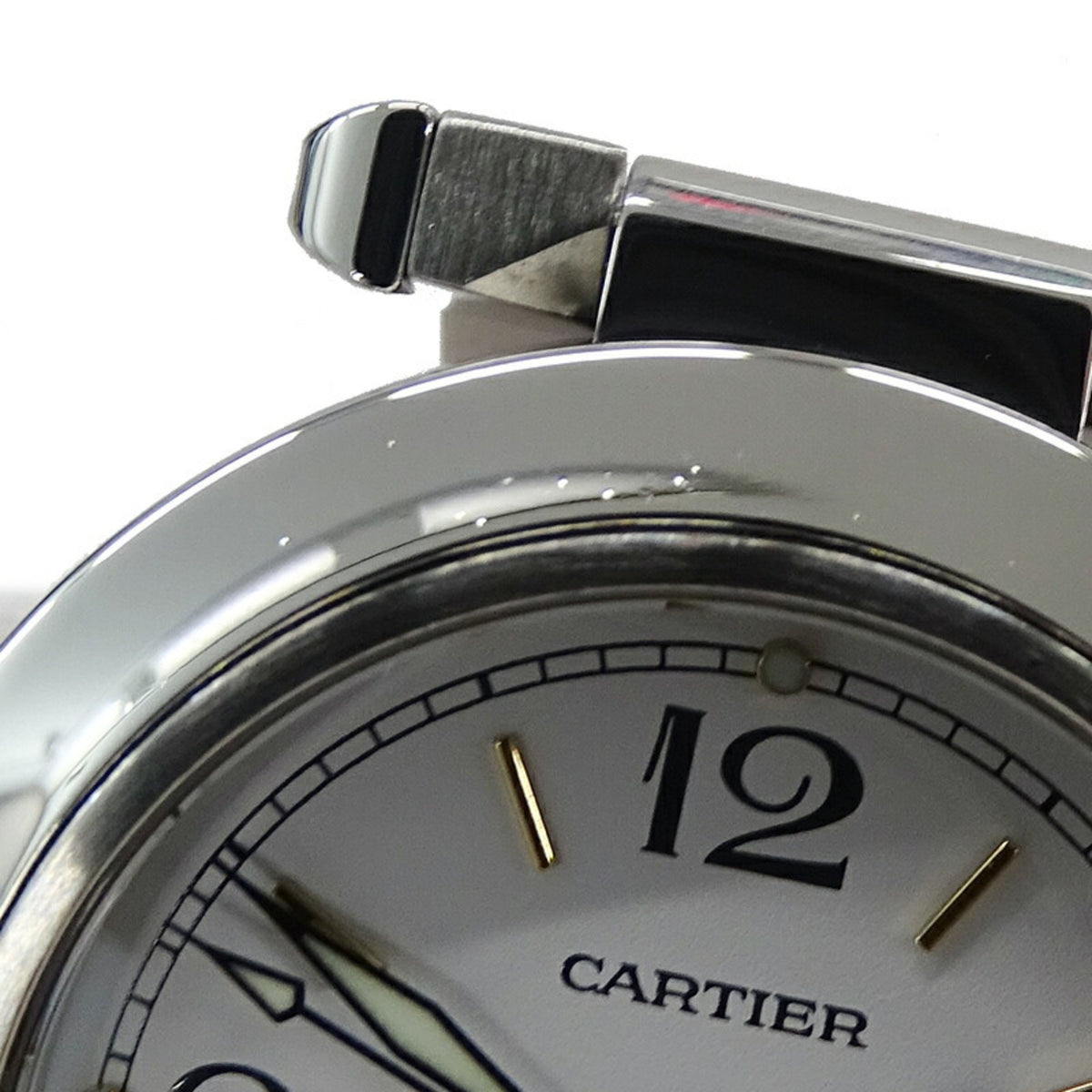 Gebrauchte Cartier Pasha C Big Date Automatikuhr für Jungen AT Edelstahl SS W31044M7 Silber Weiß Poliert