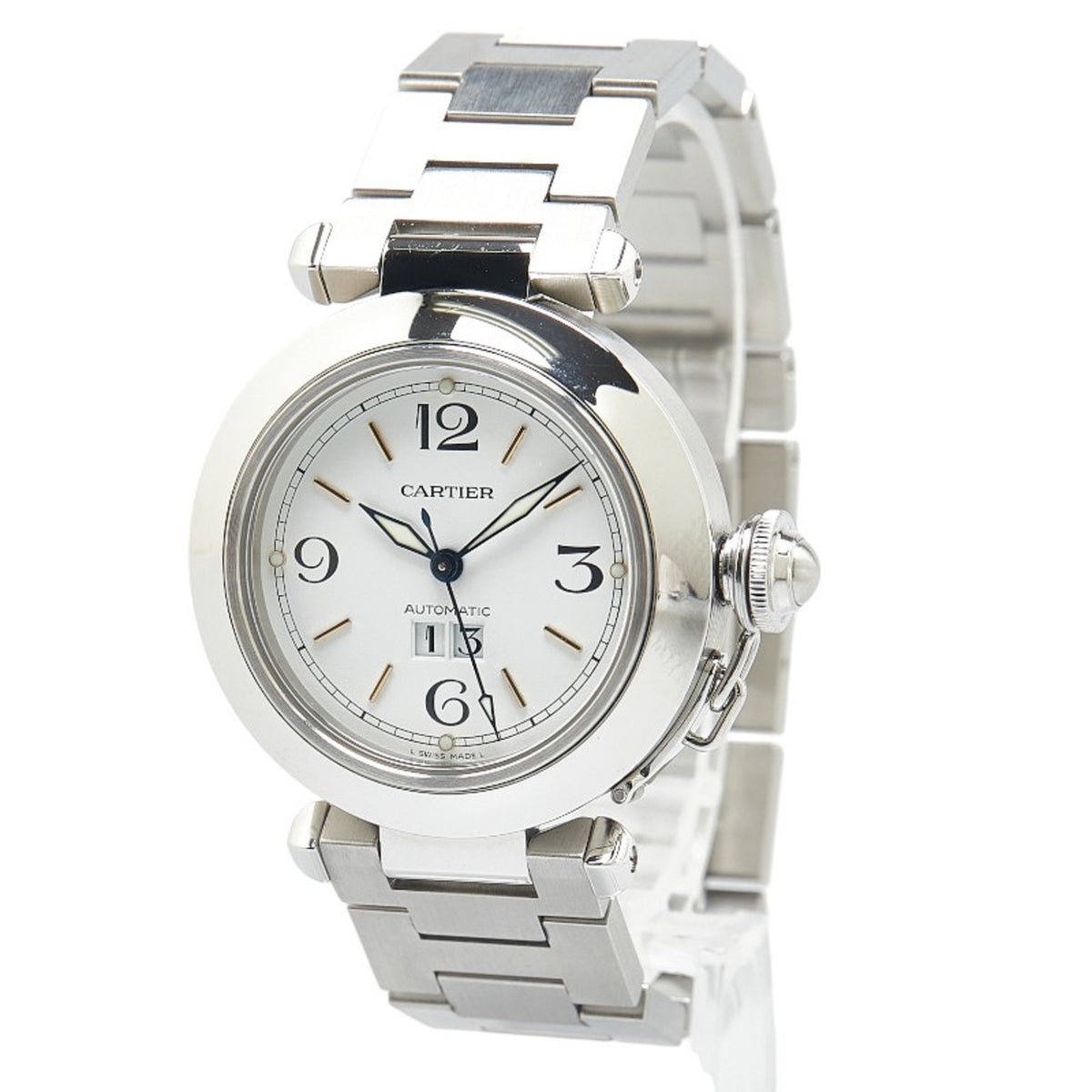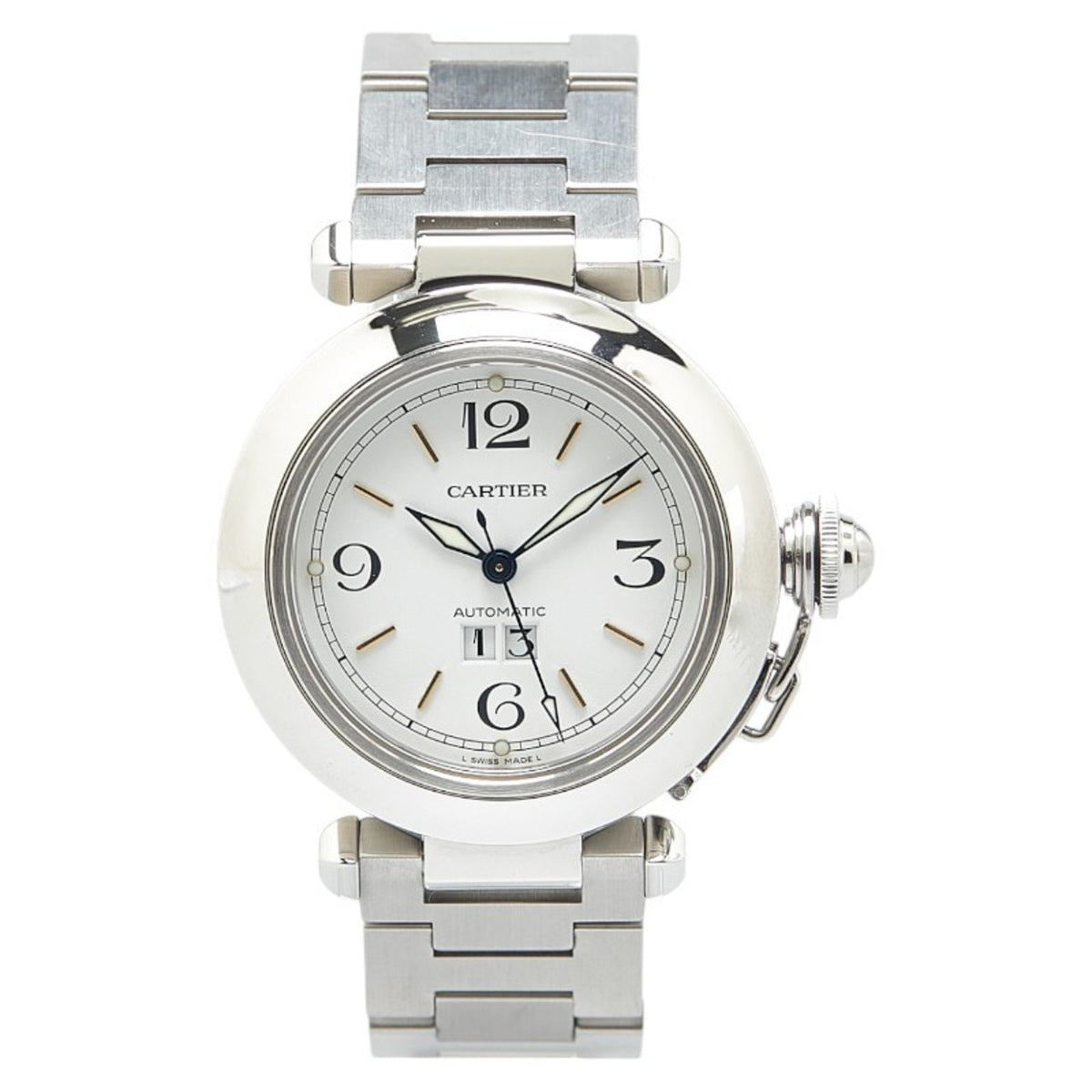 Gebrauchte Cartier Pasha C Big Date Uhr W31044M7 Automatik weißes Zifferblatt Edelstahl Damen CARTIER
