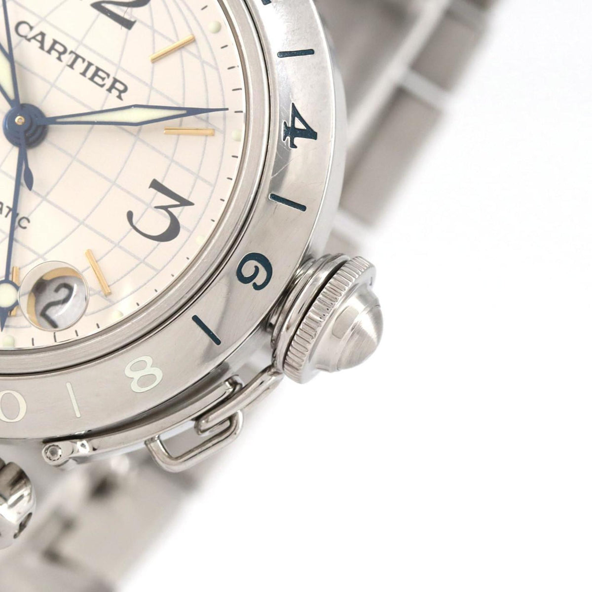 Pre-Owned Cartier Pasha C GMT W31029M7 Stainless Steel Automatic Watch