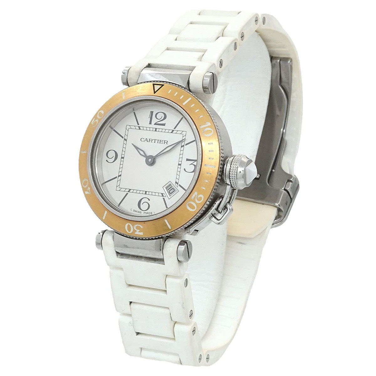 Pre-Owned Cartier Pasha Seatimer Two-tone Watch W3140001 Women's Date Silver PG Quartz