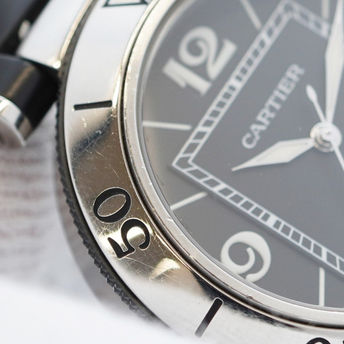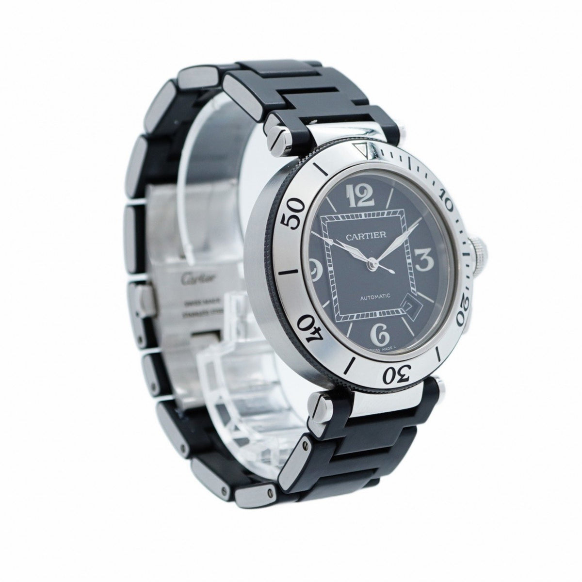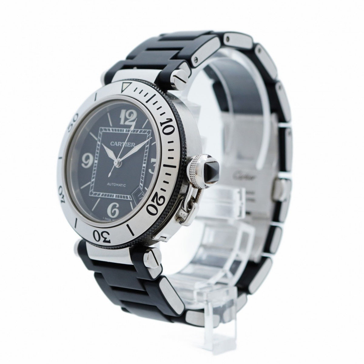Gebrauchte Cartier Pasha Seatimer W31077U2 Herrenuhr mit schwarzem Zifferblatt