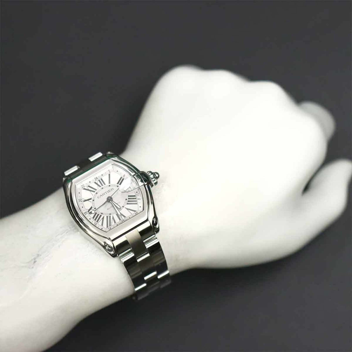 Gebrauchte Cartier Roadster GMT W62032X6 Herrenuhr Datum Silber Automatik