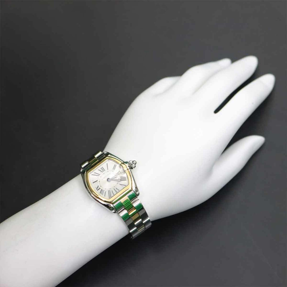 Pre-Owned Cartier Roadster SM Two-tone Watch W62026Y4 Women's with Date Display, Silver 18K Yellow Gold Quartz Movement