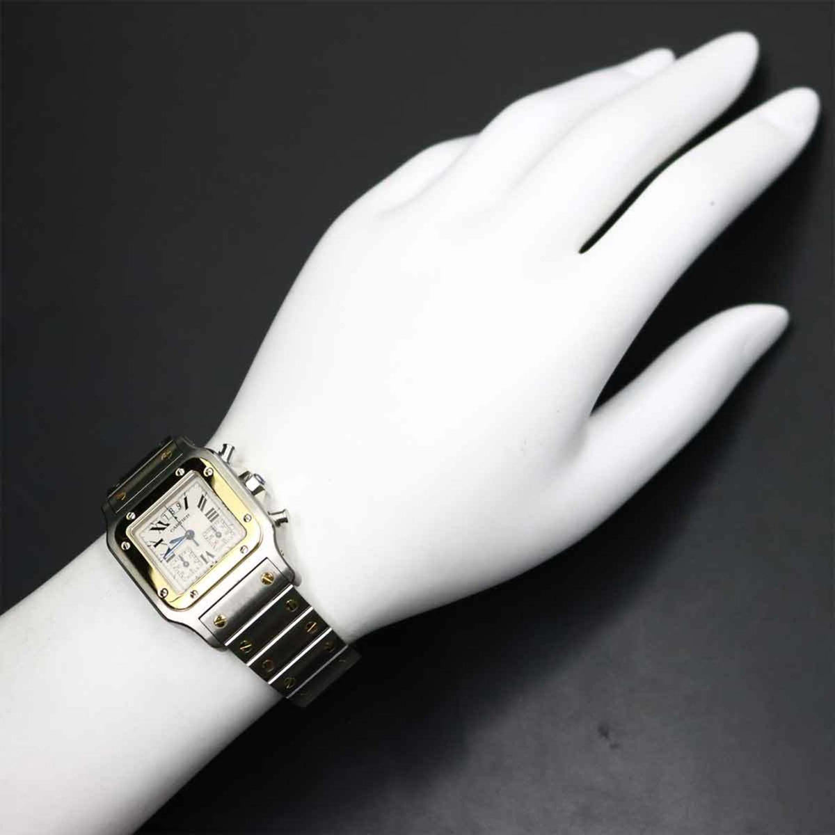 Pre-Owned Cartier Santos Galbe LM Chrono Reflex Perpetual Calendar Two-Tone Men's Watch W20042C4, Date Display, Ivory/YG Yellow Gold Quartz