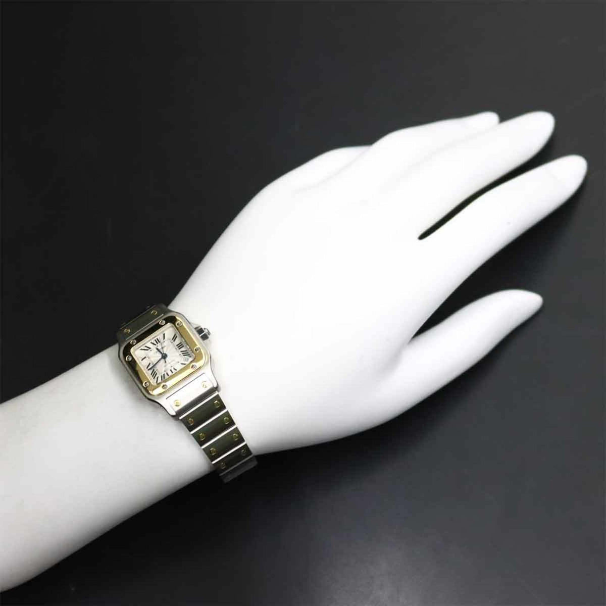 Pre-Owned Cartier Santos Galbe SM Two-tone W20057C4 Women's Watch with Date Display, Silver and Yellow Gold, Automatic