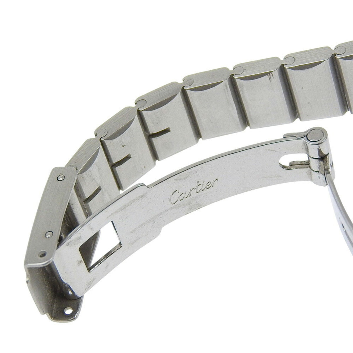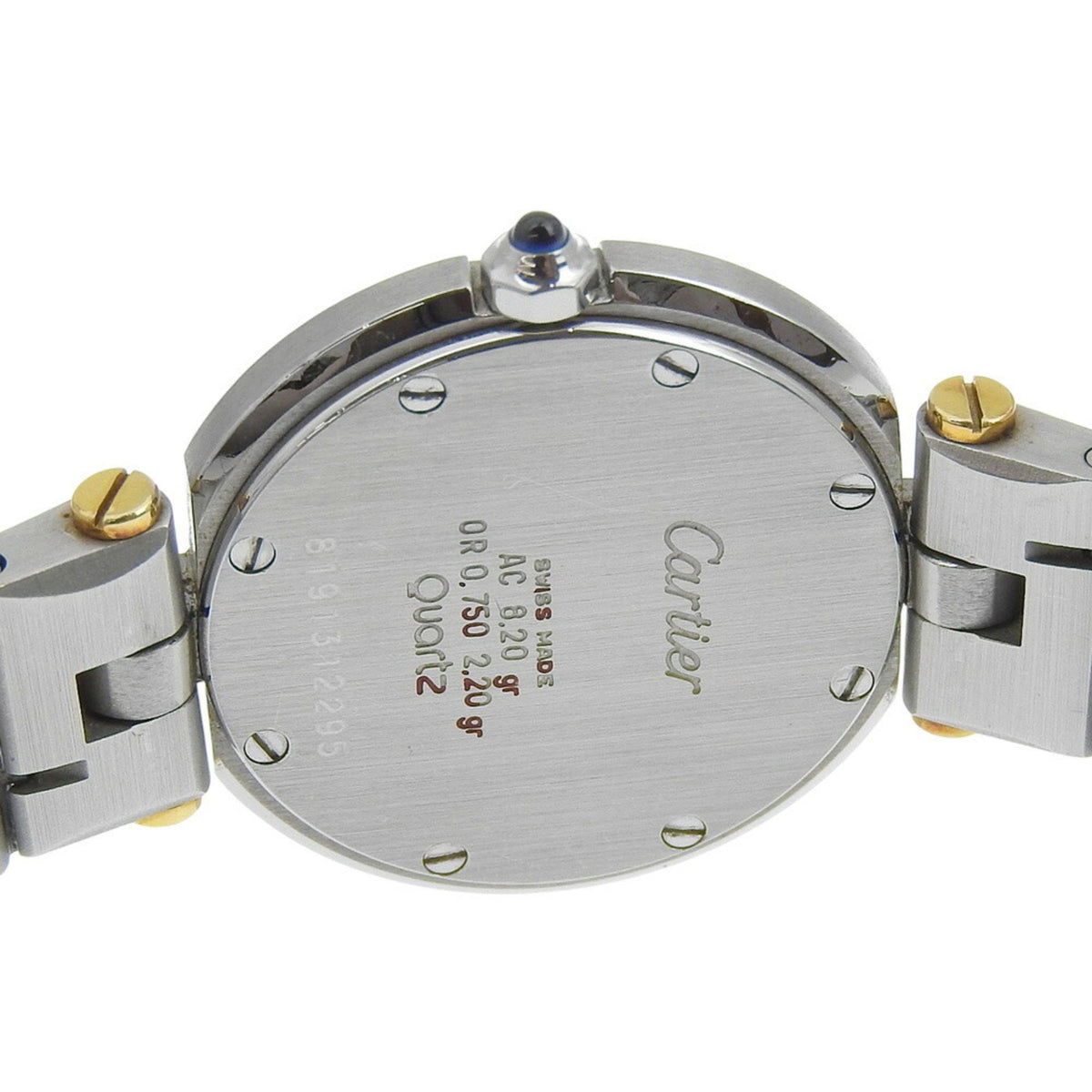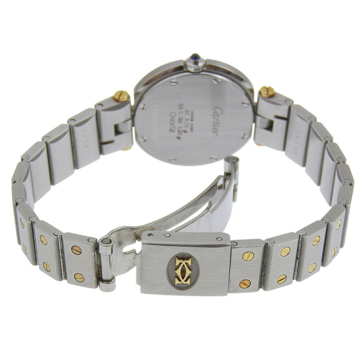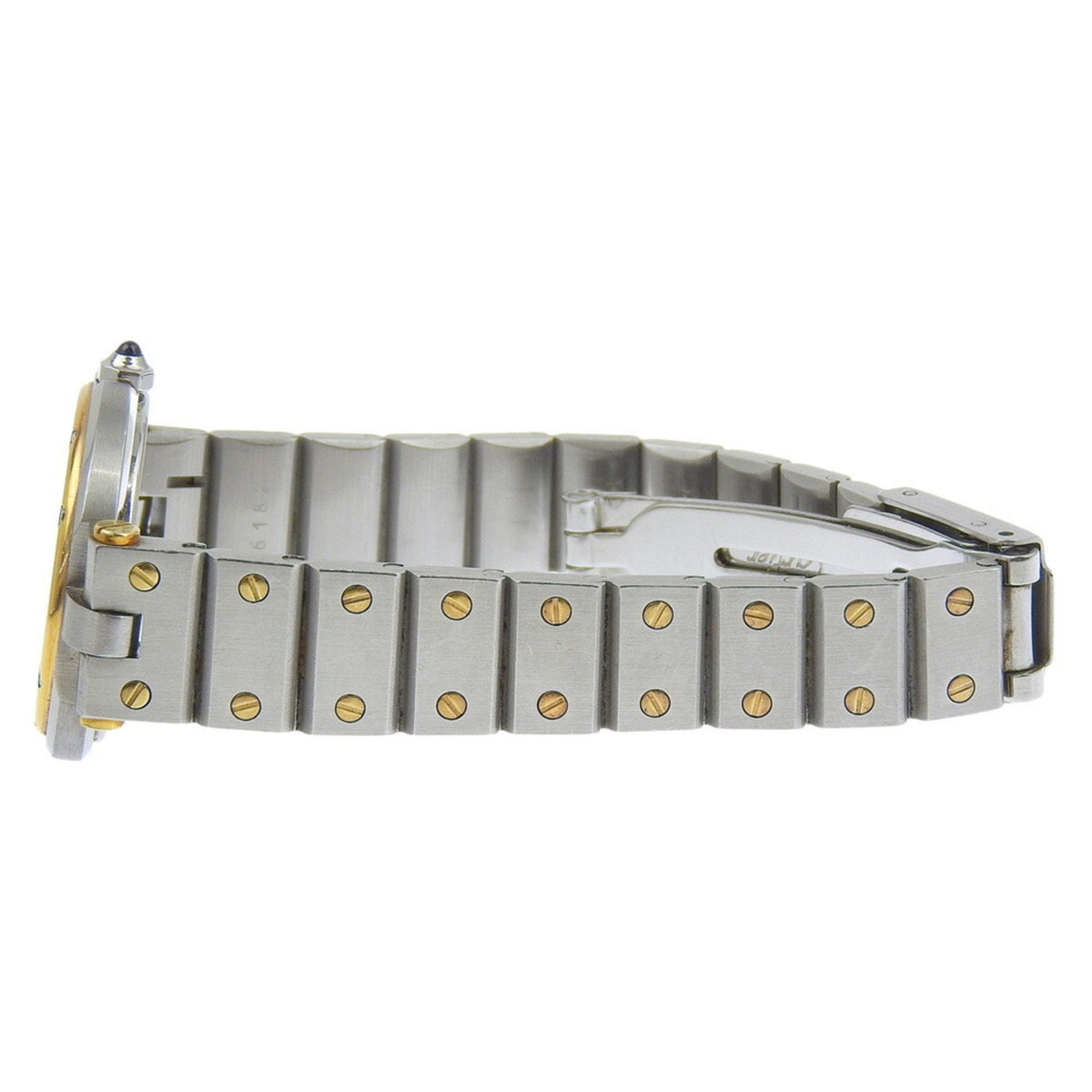 Pre-Owned Cartier Santos Round SM Watch, caliber 81, 84038288, stainless steel with yellow gold quartz movement, analog display, white dial, for women.
