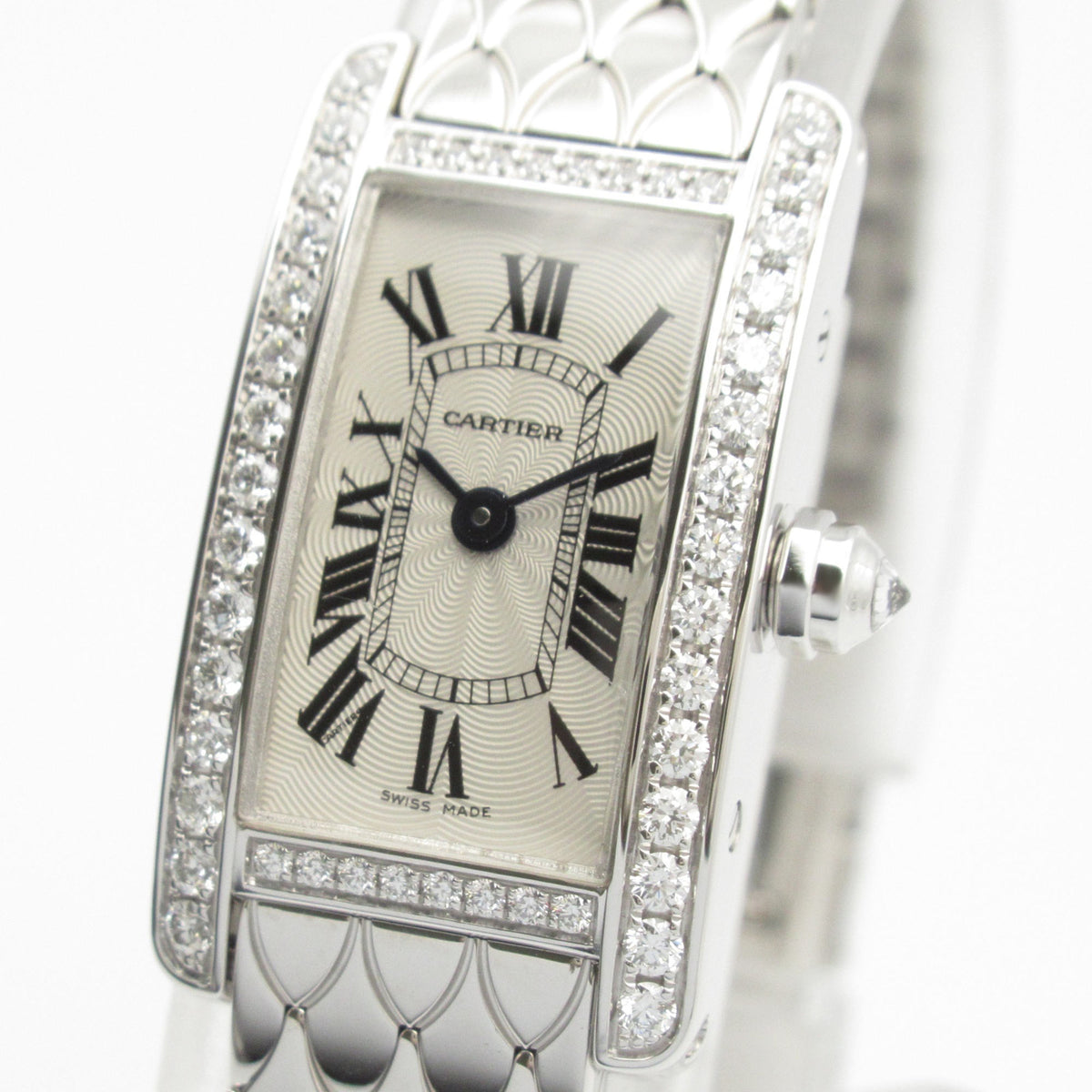 Pre-Owned Cartier Tank Am?ricaine Mini Wristwatch in 18K White Gold (WB710013) for Women, Silver