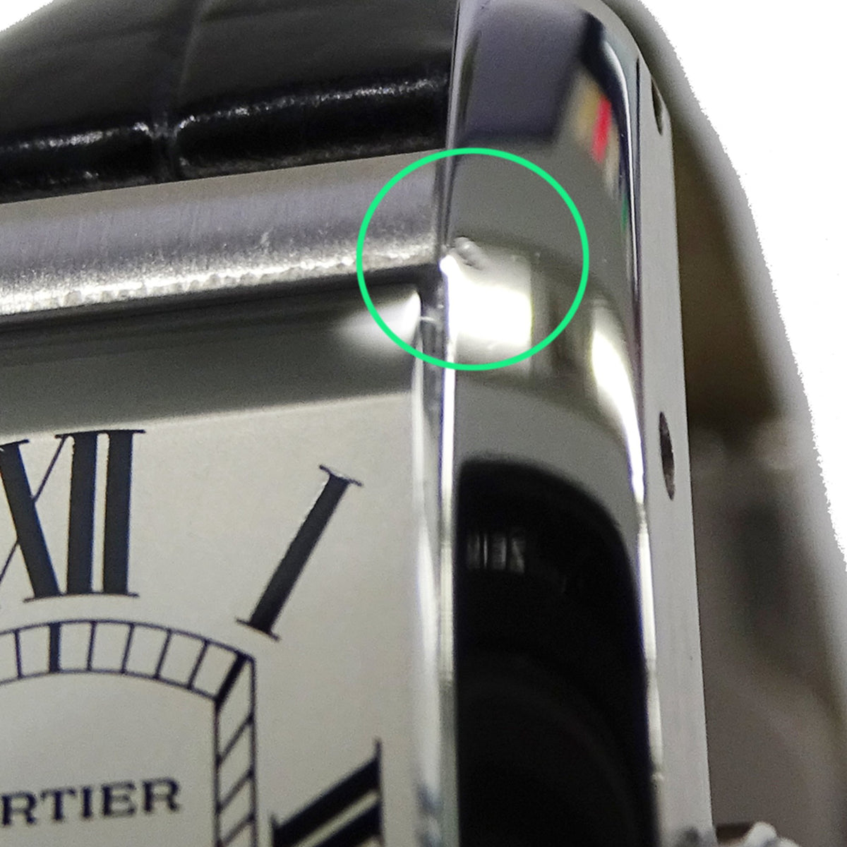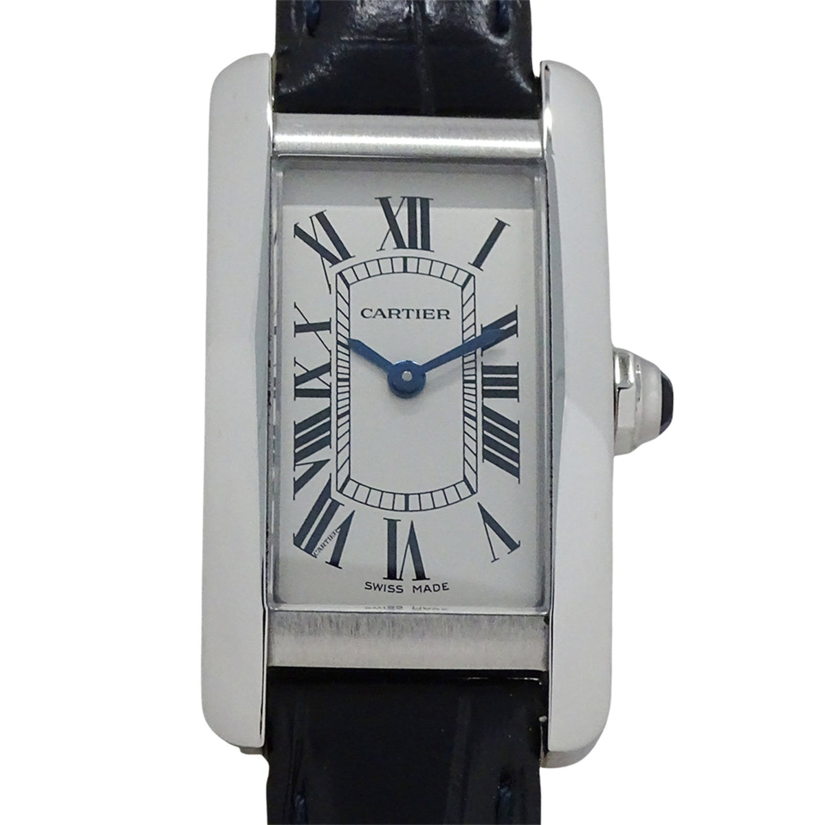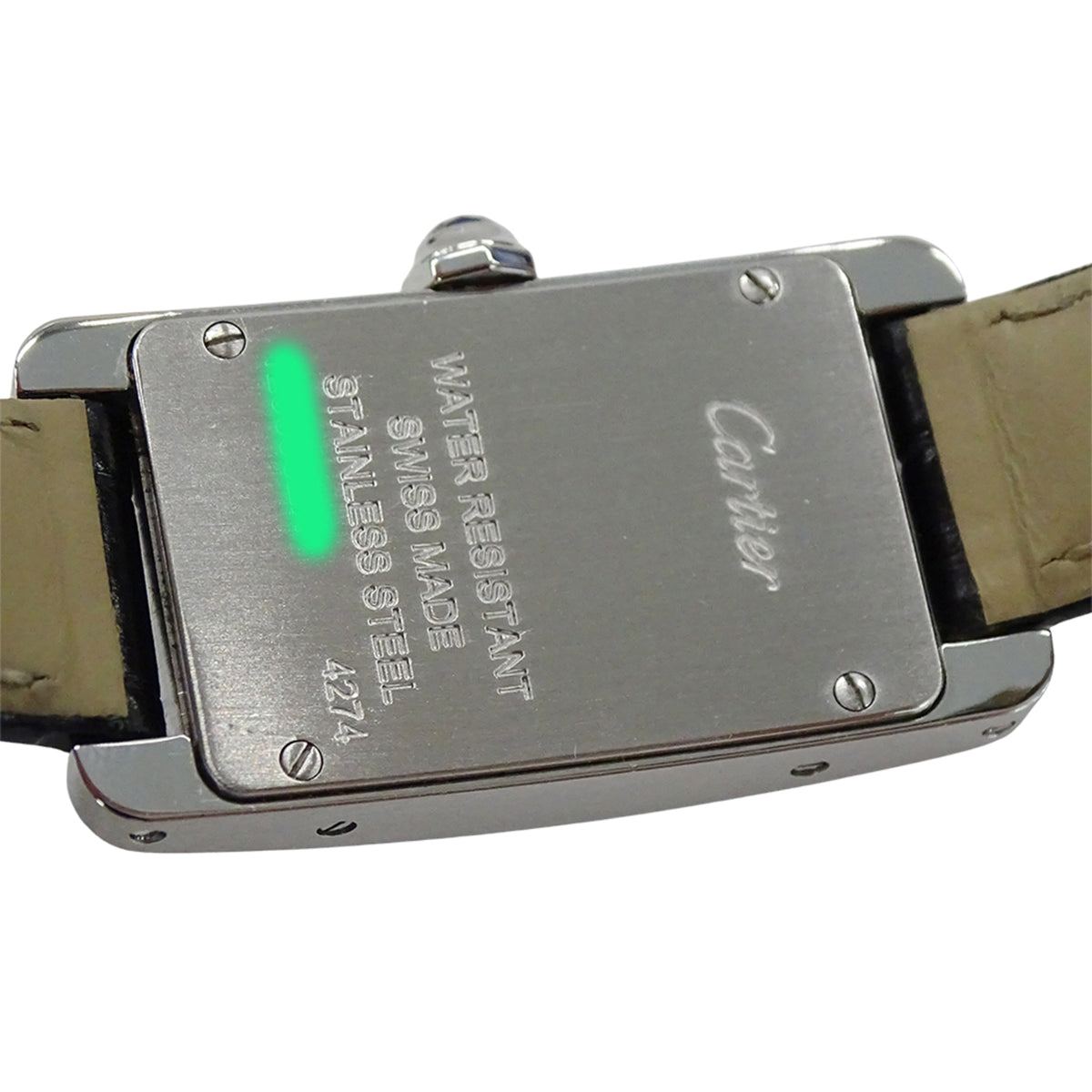 Pre-Owned Cartier Tank Am?ricaine SM Quartz Watch for Women, WSTA0016, Stainless Steel, Leather, Silver, Black, Square, Polished