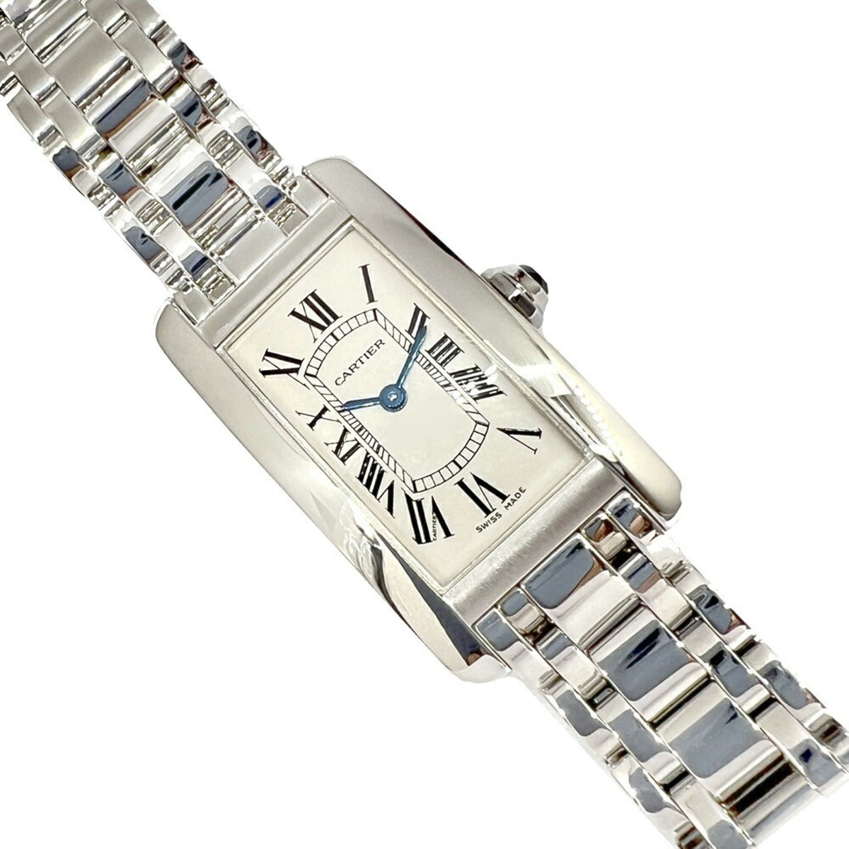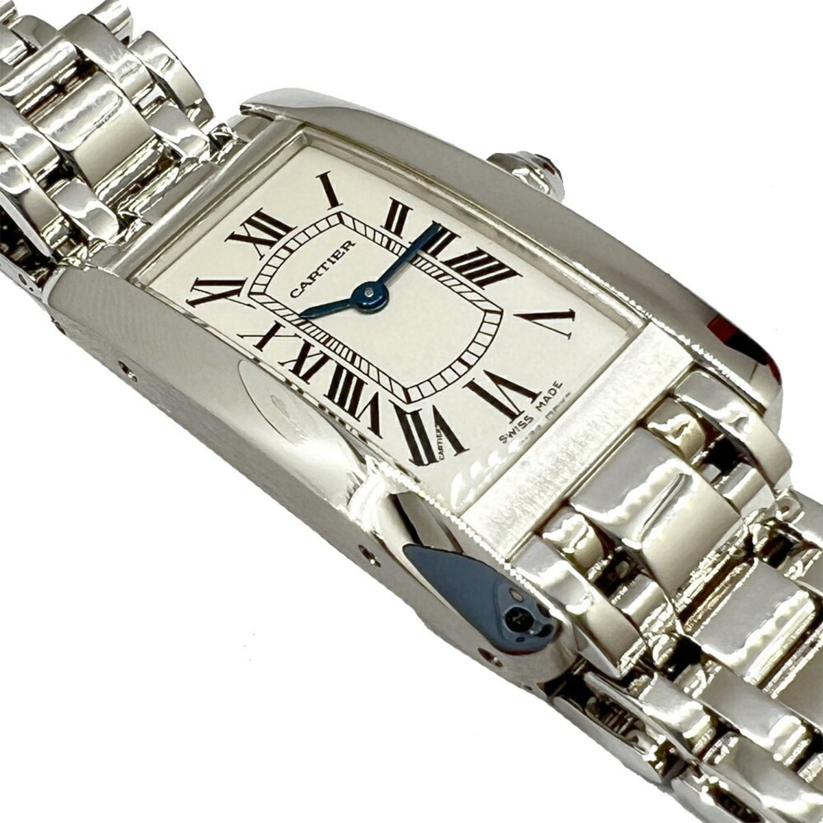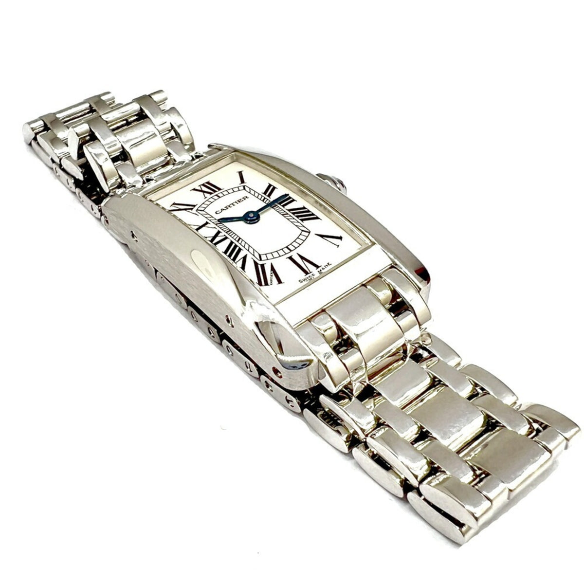 Gebrauchte Cartier Tank Americaine SM W260119L1 K18WG Weißes Zifferblatt Quarz Armbanduhr Rechteckige Uhr Batteriebetrieben Römische Ziffern Damen