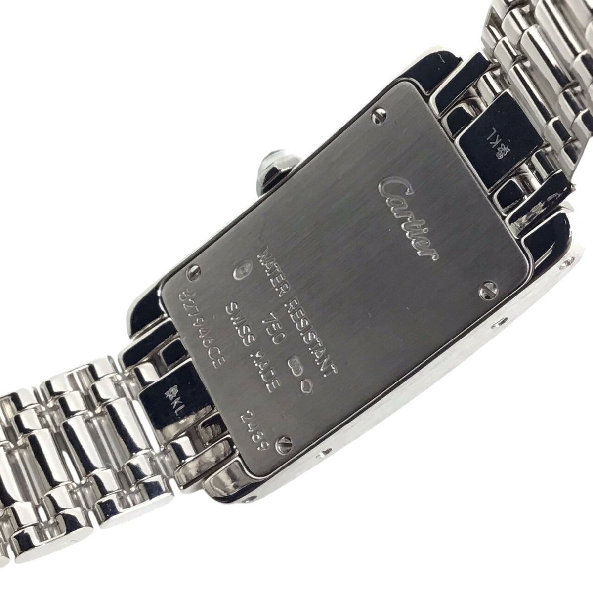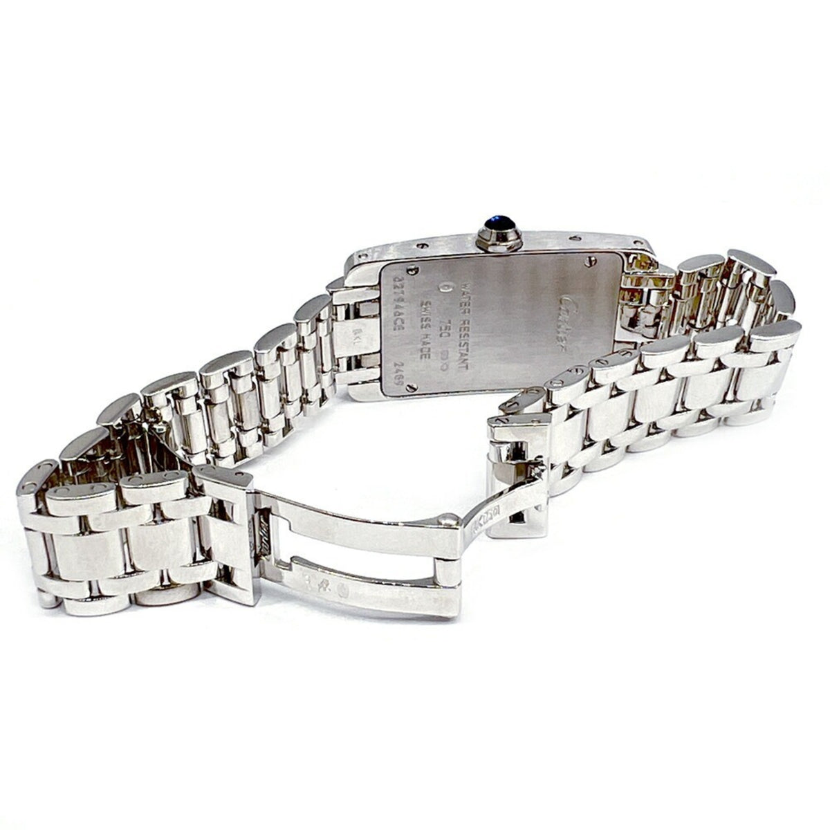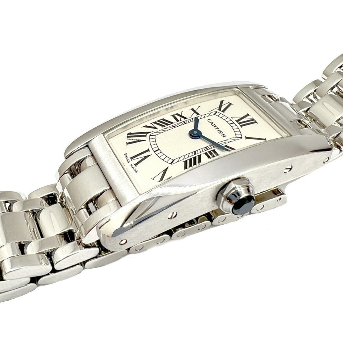 Gebrauchte Cartier Tank Americaine SM W260119L1 K18WG Weißes Zifferblatt Quarz Armbanduhr Rechteckige Uhr Batteriebetrieben Römische Ziffern Damen
