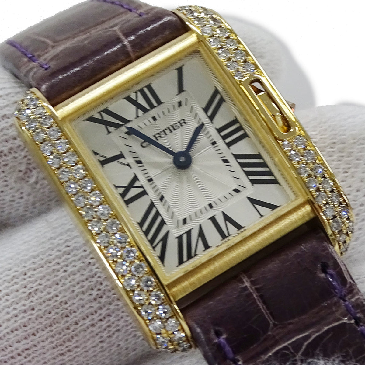 Pre-Owned Cartier Tank Anglaise Watch, Women's, Small, Diamond, Quartz, QZ, 750YG, Leather, Square, Polished, WT100014