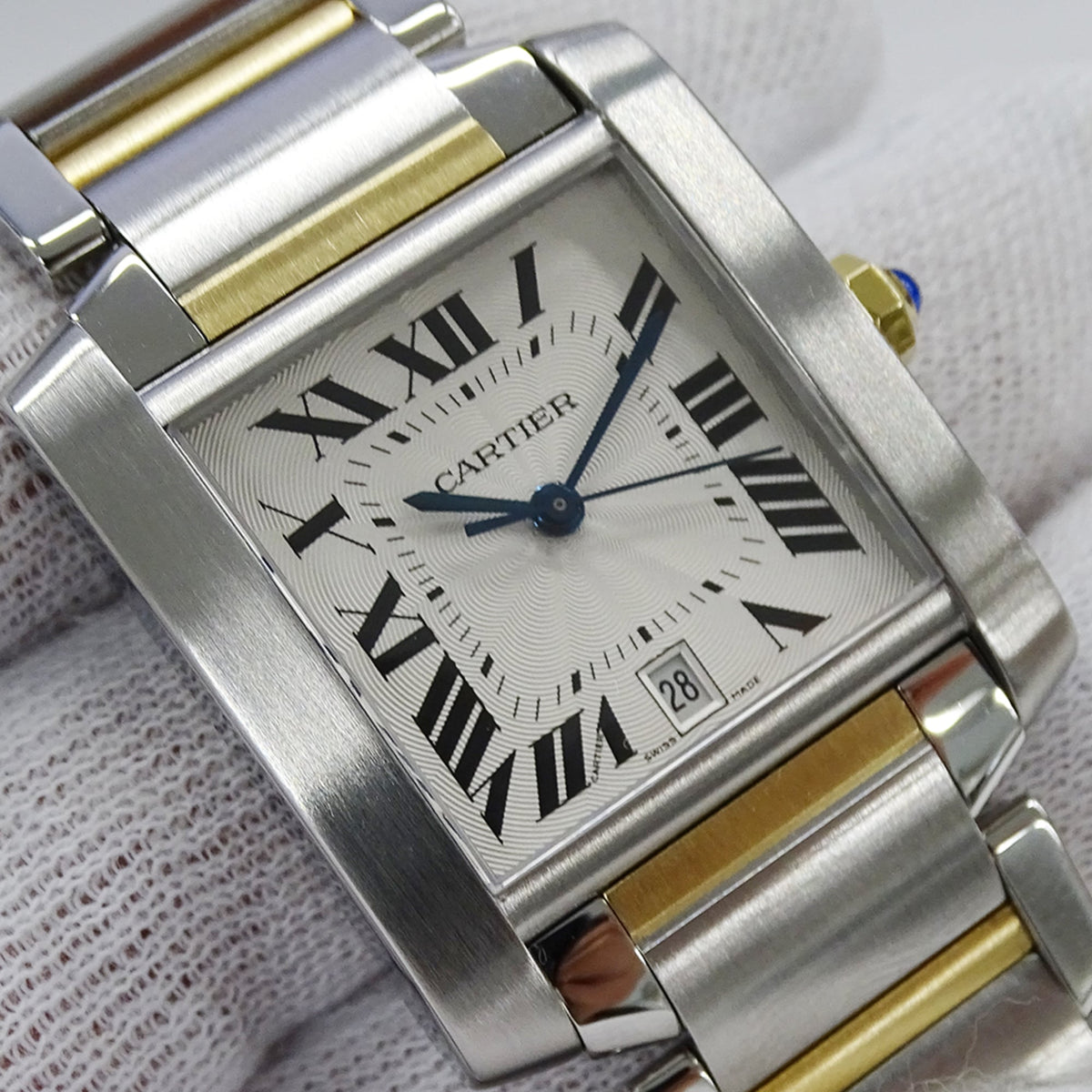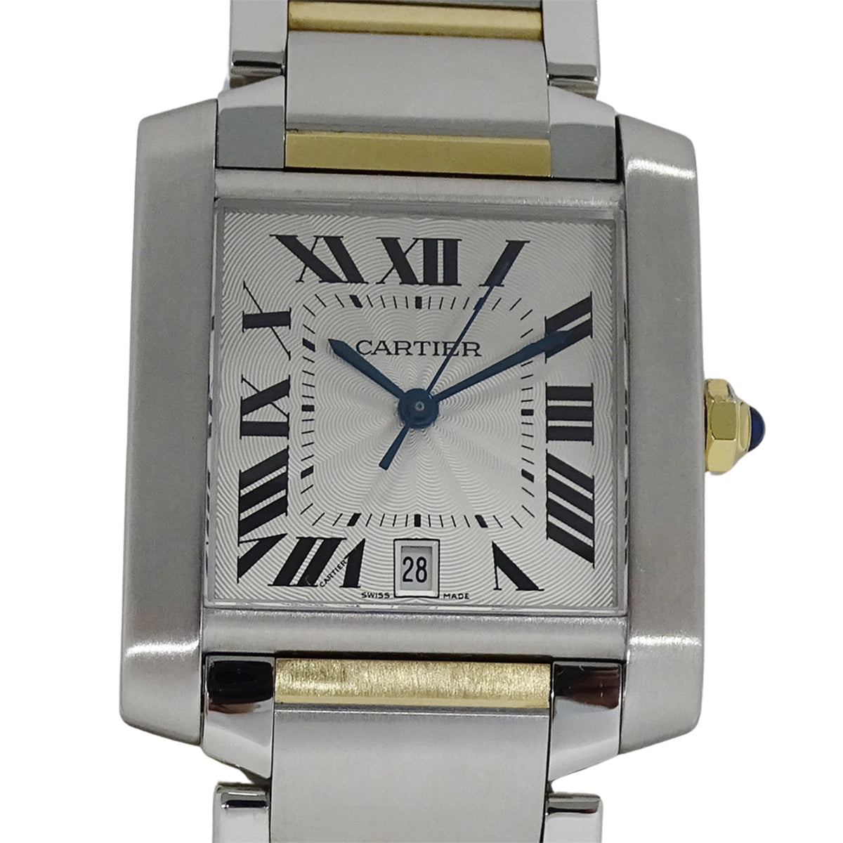 Pre-Owned Cartier Tank Fran?aise Men's Watch, LM, Date, Automatic, Stainless Steel, Gold, Yellow W51005Q4, Combination, Overhauled and Polished