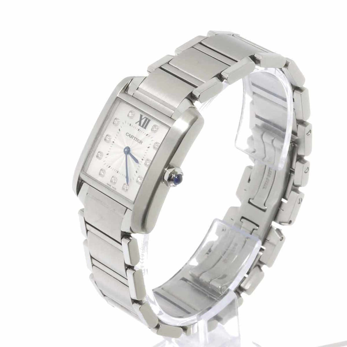 Pre-Owned Cartier Tank Fran?aise MM WE110007 Women's Watch with 11 Diamonds and Silver Quartz Movement