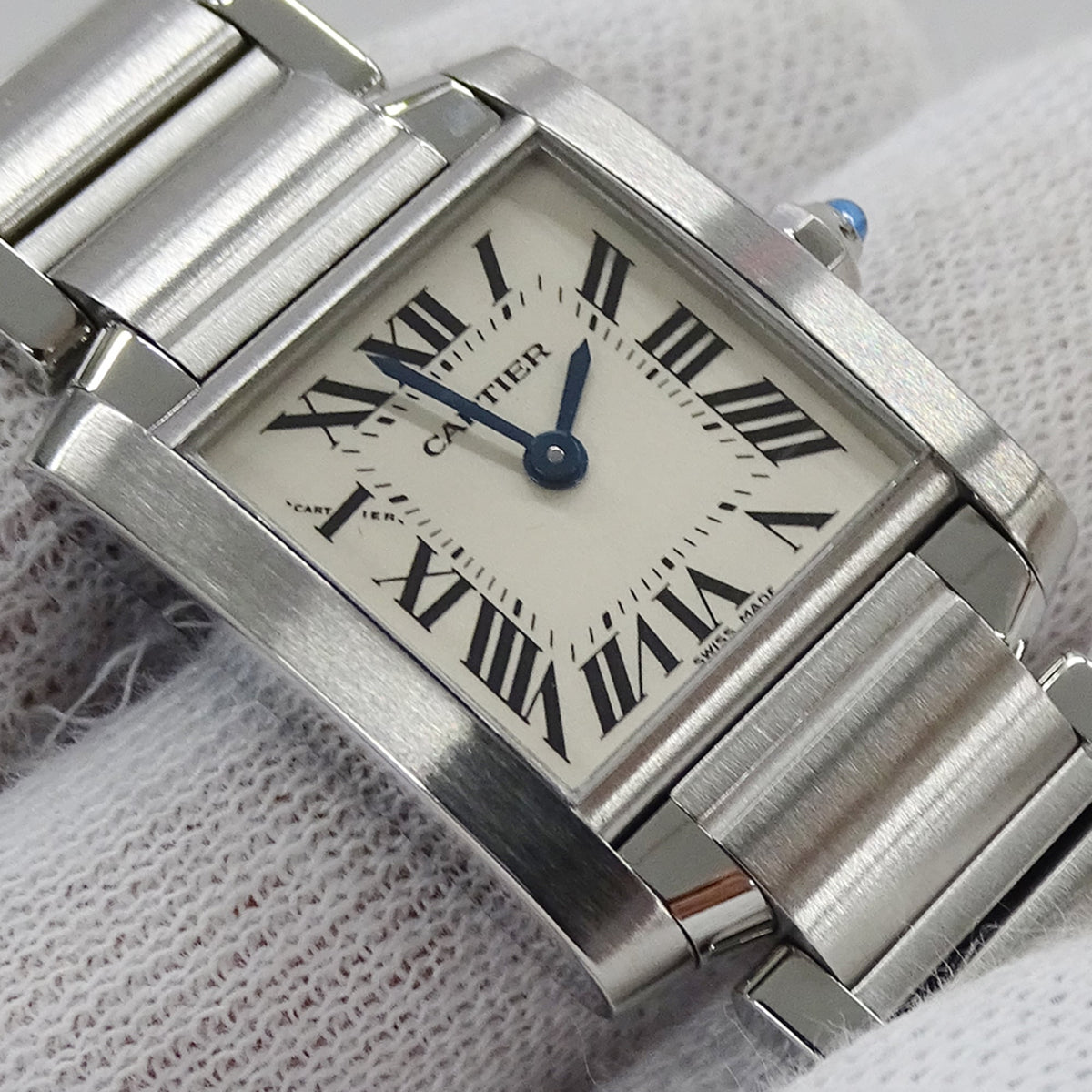 Pre-Owned Cartier Tank Fran?aise Women's Watch, SM Quartz, QZ Stainless Steel, W51008Q3, Silver/Ivory, Polished