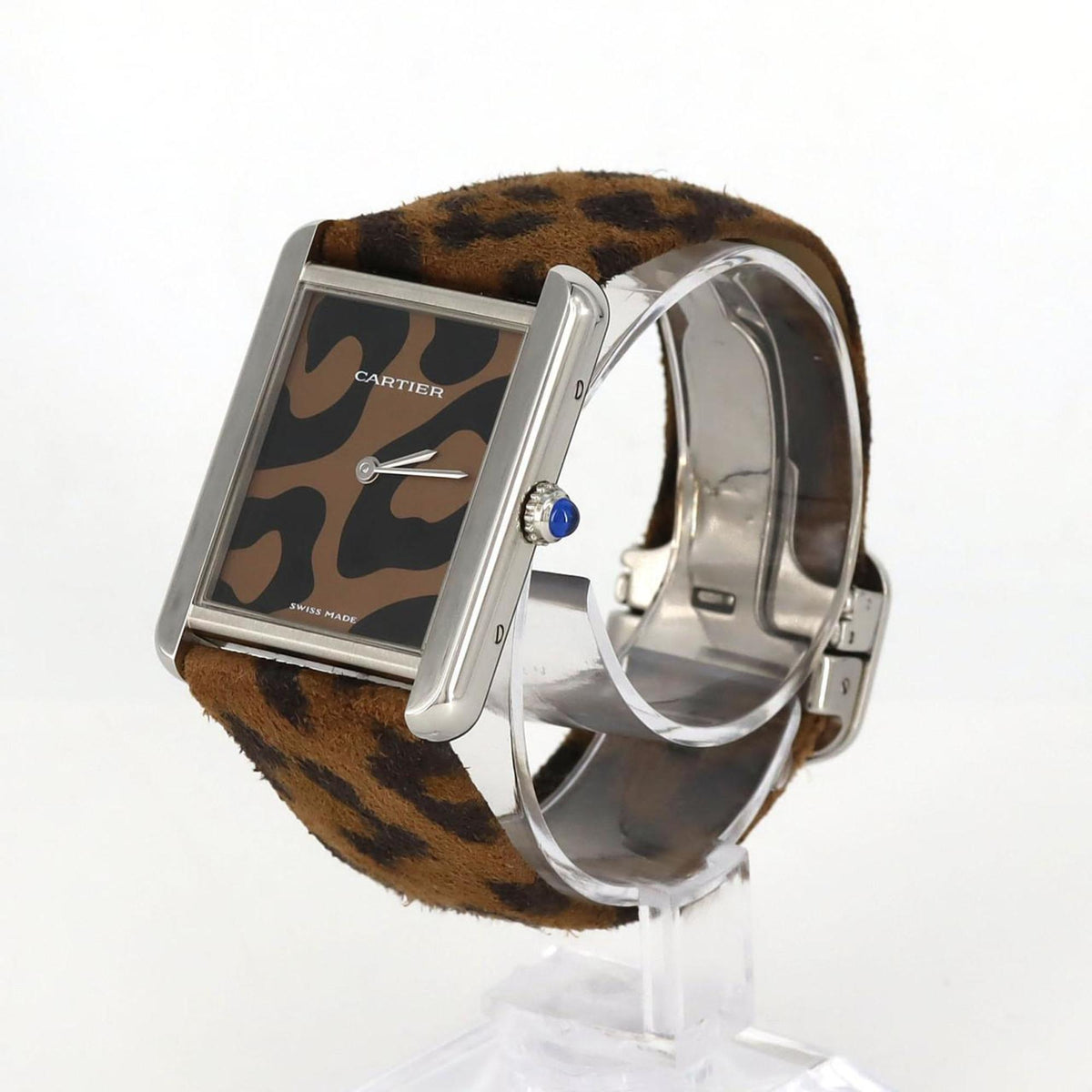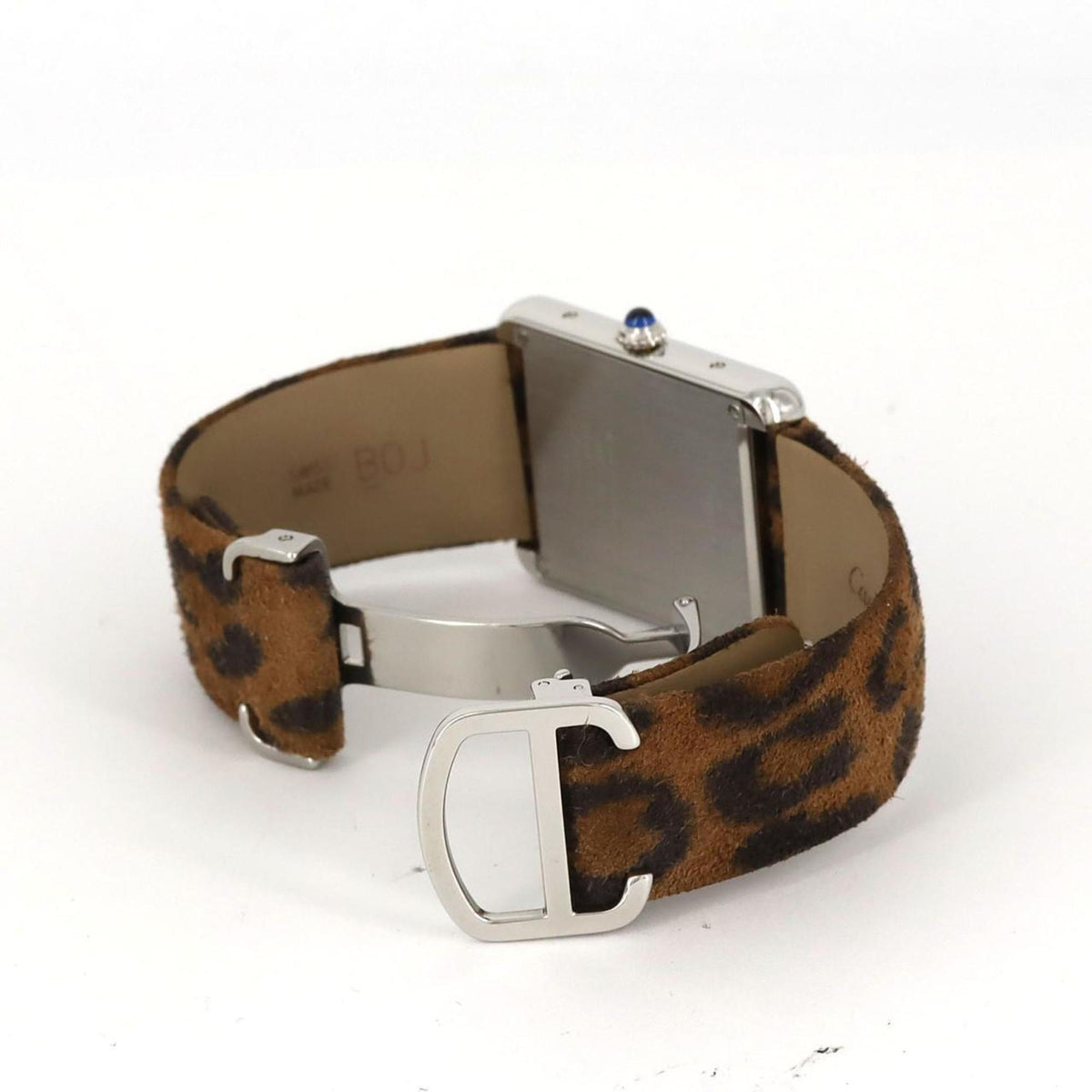 Gebrauchte Cartier Tank Solo LM Panthere Zifferblatt W5200016 SS Quarz-Armbanduhr