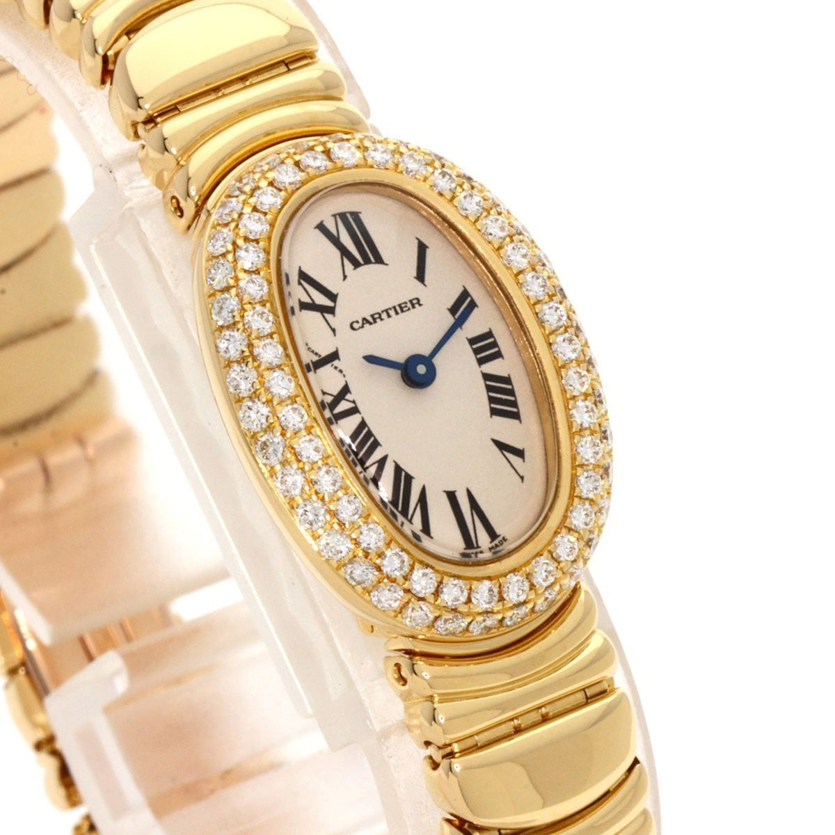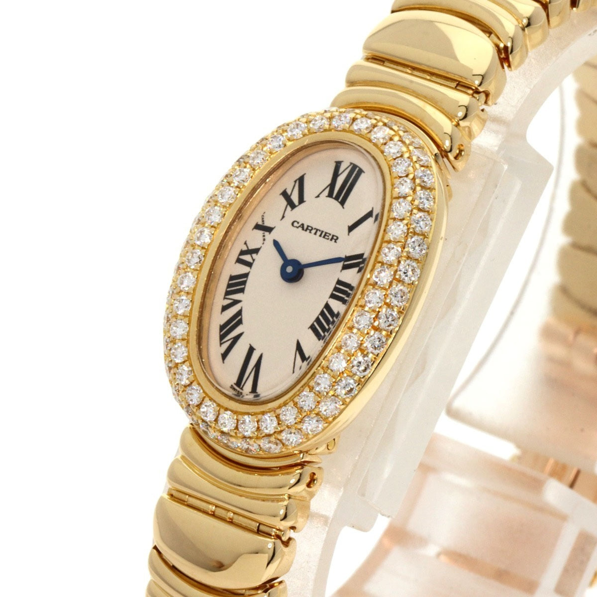 Gebrauchte Cartier WB5094D8 Mini Baignoire Lünette Diamant Uhr 18K Gelbgold K18YG Damen CARTIER