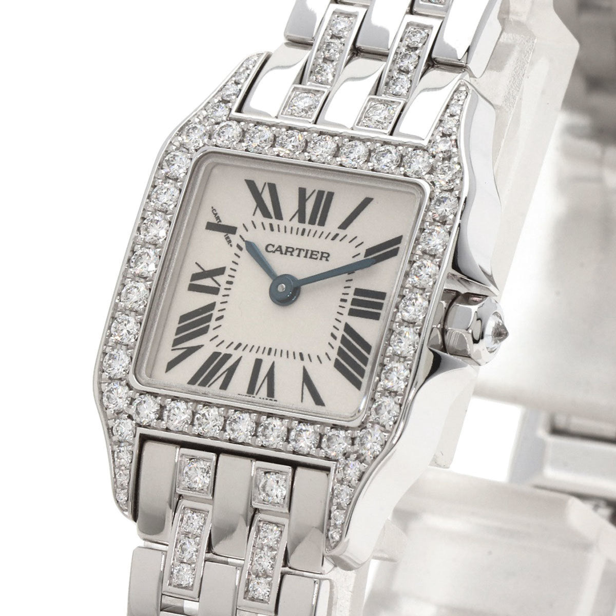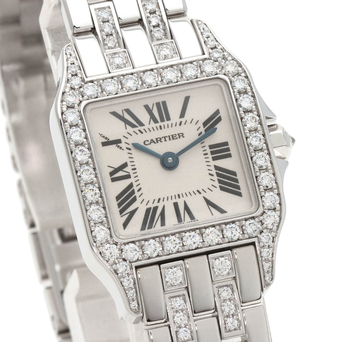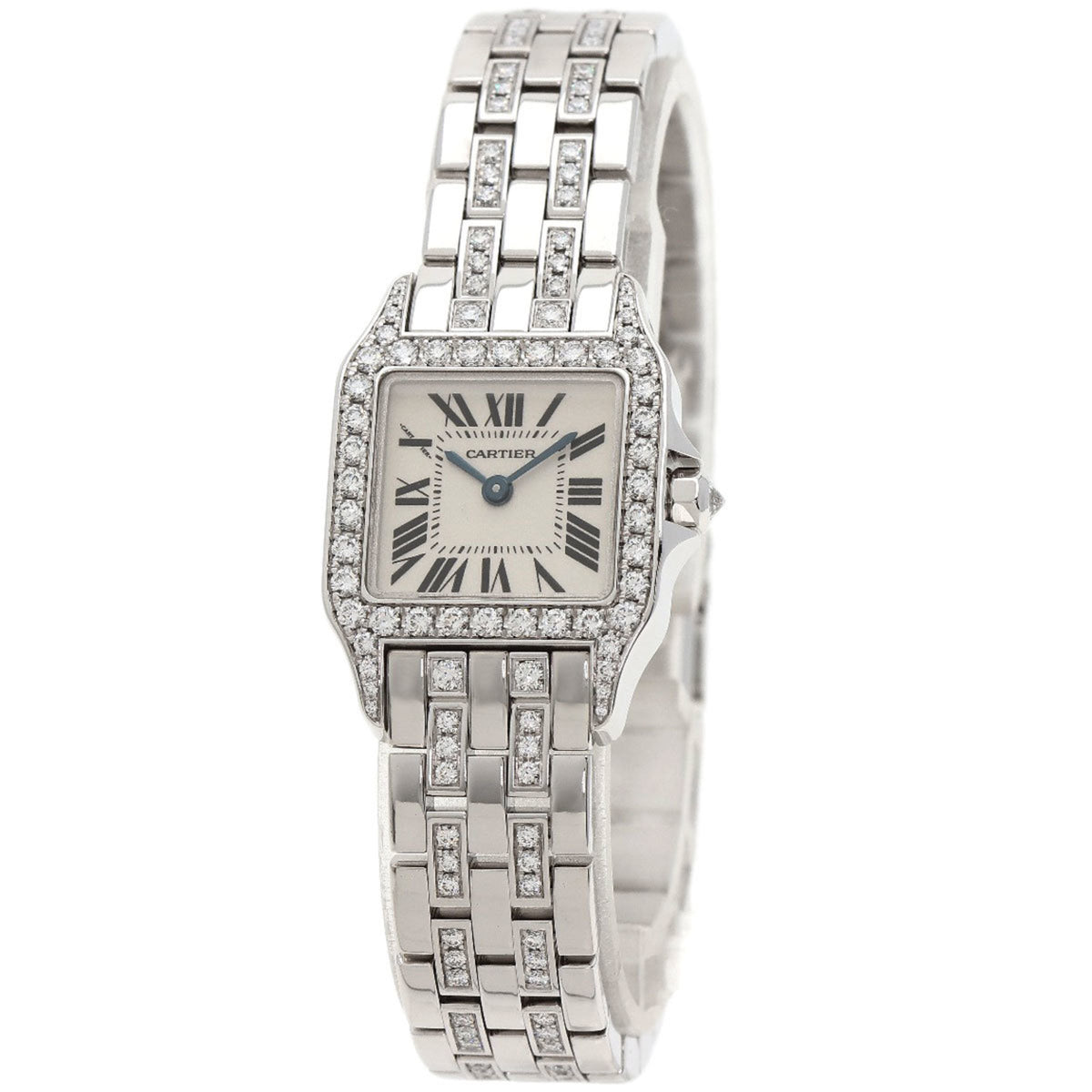 Gebrauchte Cartier WF9003YC Santos Demoiselle SM Diamantuhr 18 Karat Weißgold K18WG Damen CARTIER