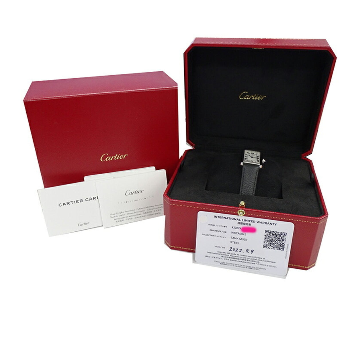 Gebrauchte Cartier Damen Tank Must SM Quarzuhr Edelstahl Leder WSTA0042 Quadratisch