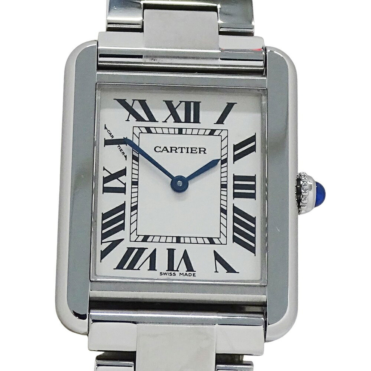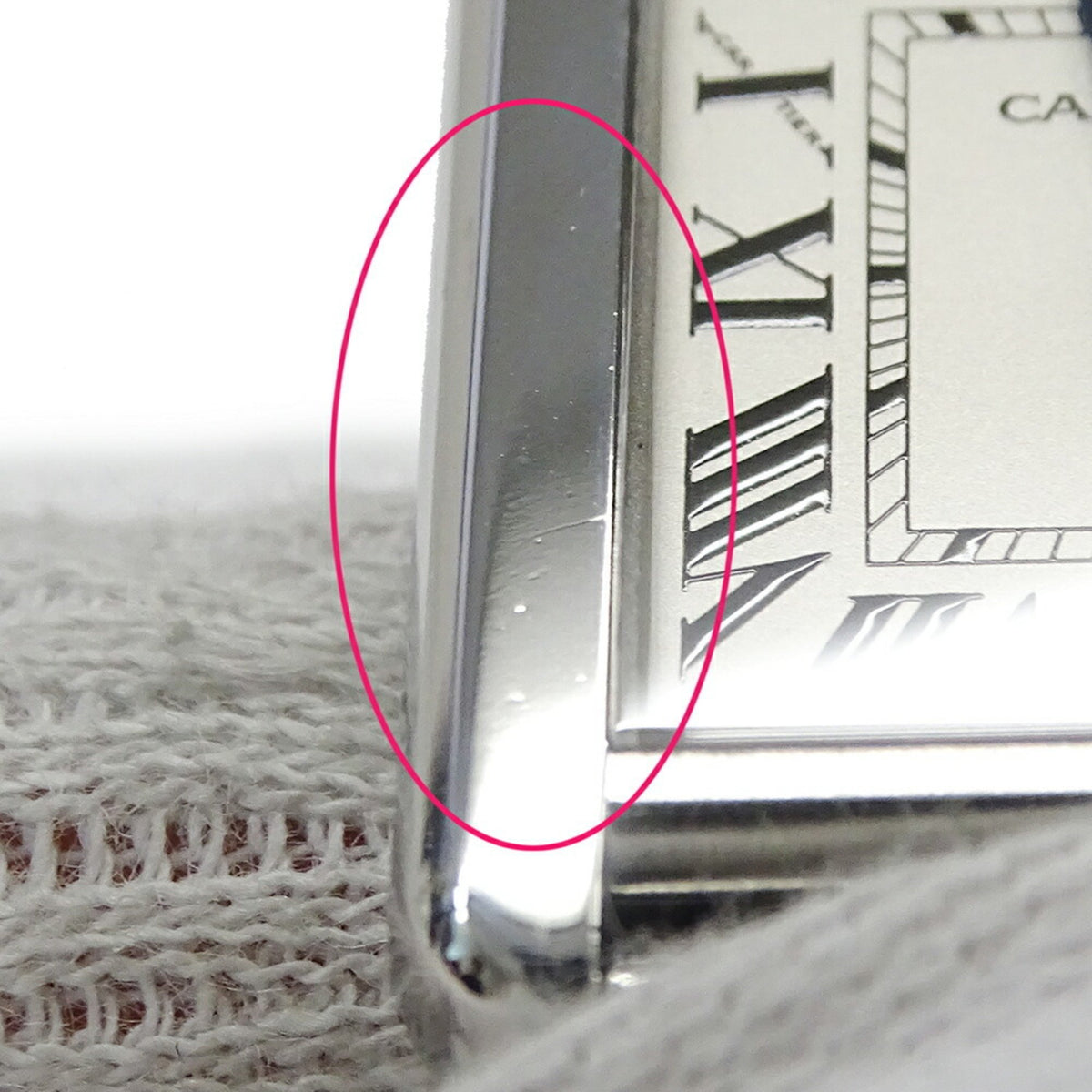 Gebrauchte Cartier Damen Tank Solo SM Quarz Edelstahl W5200013 Silber Quadrat Poliert