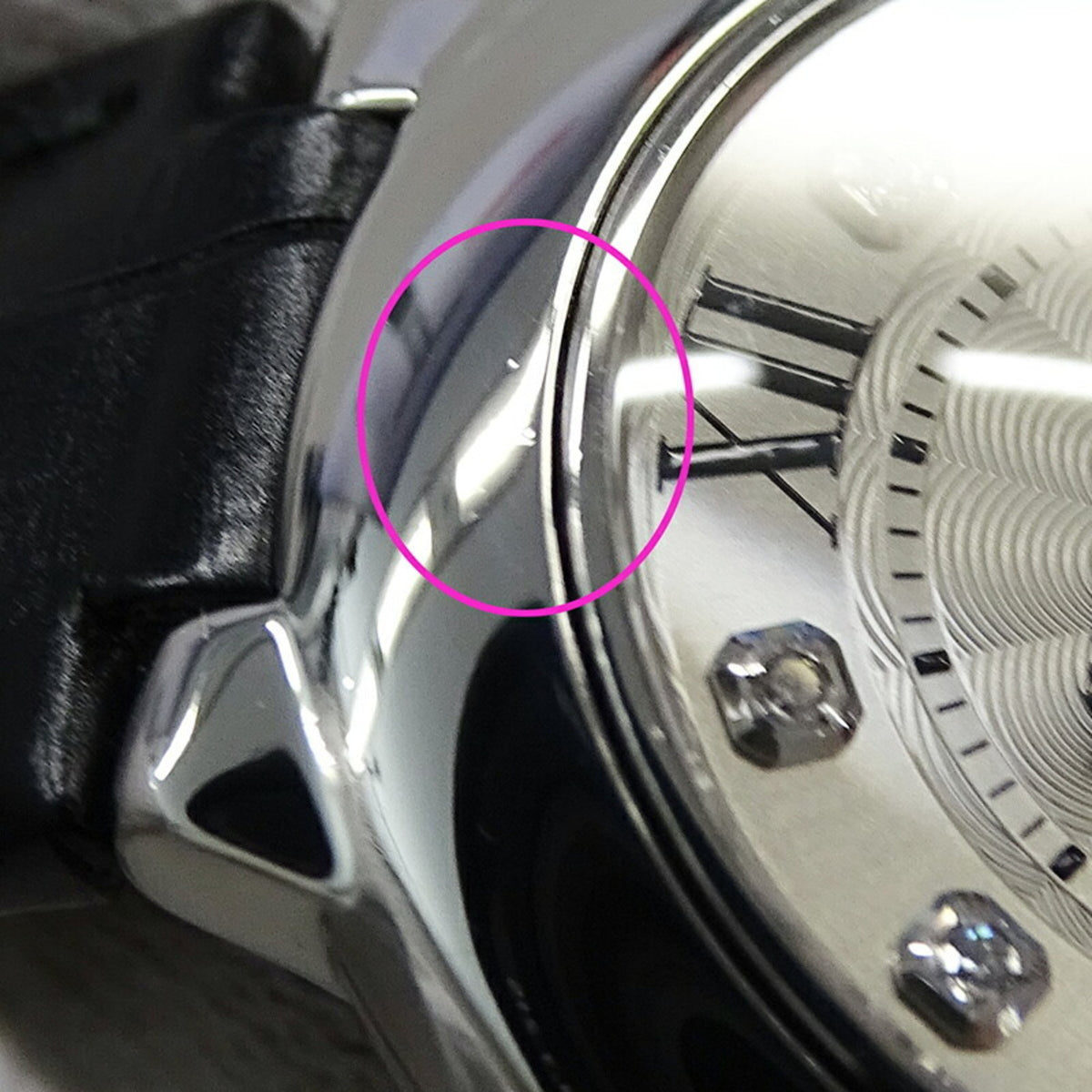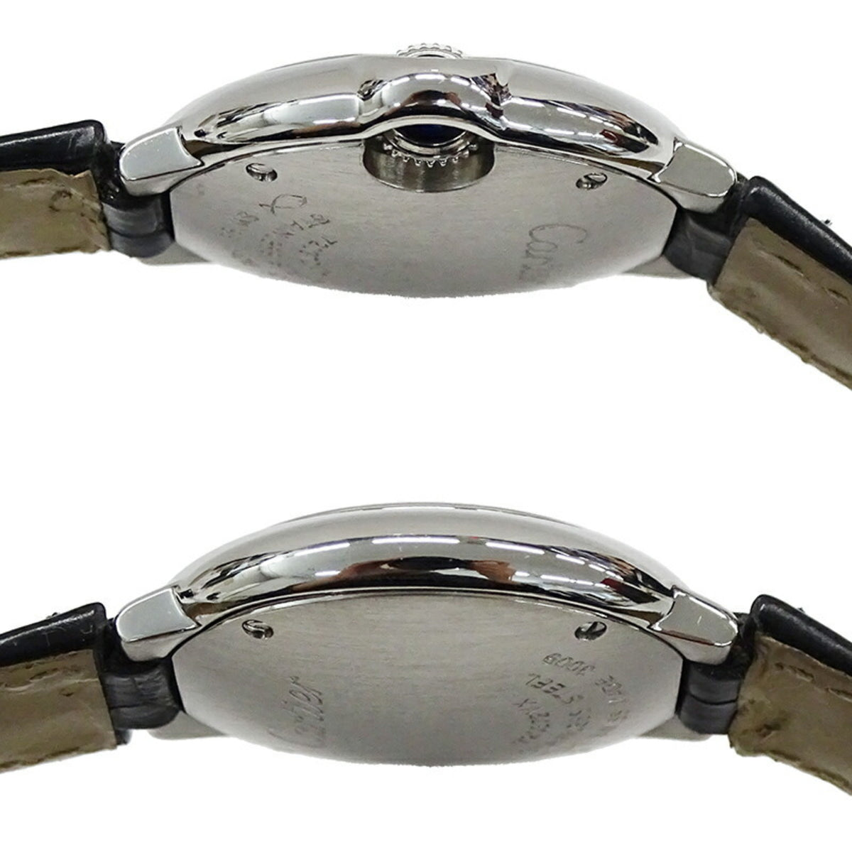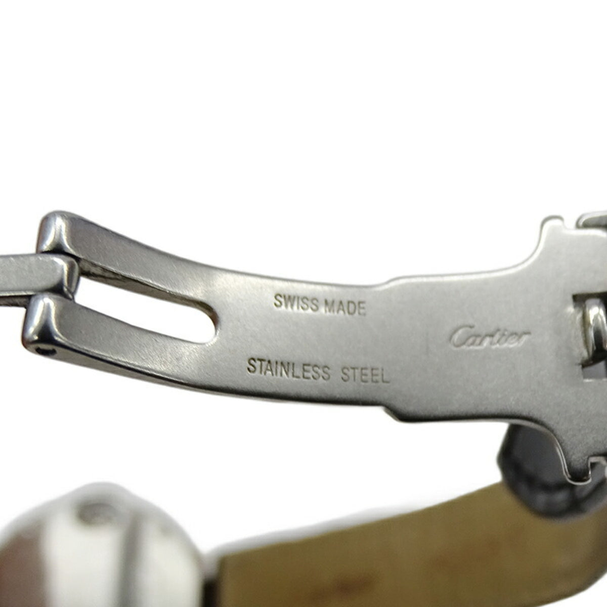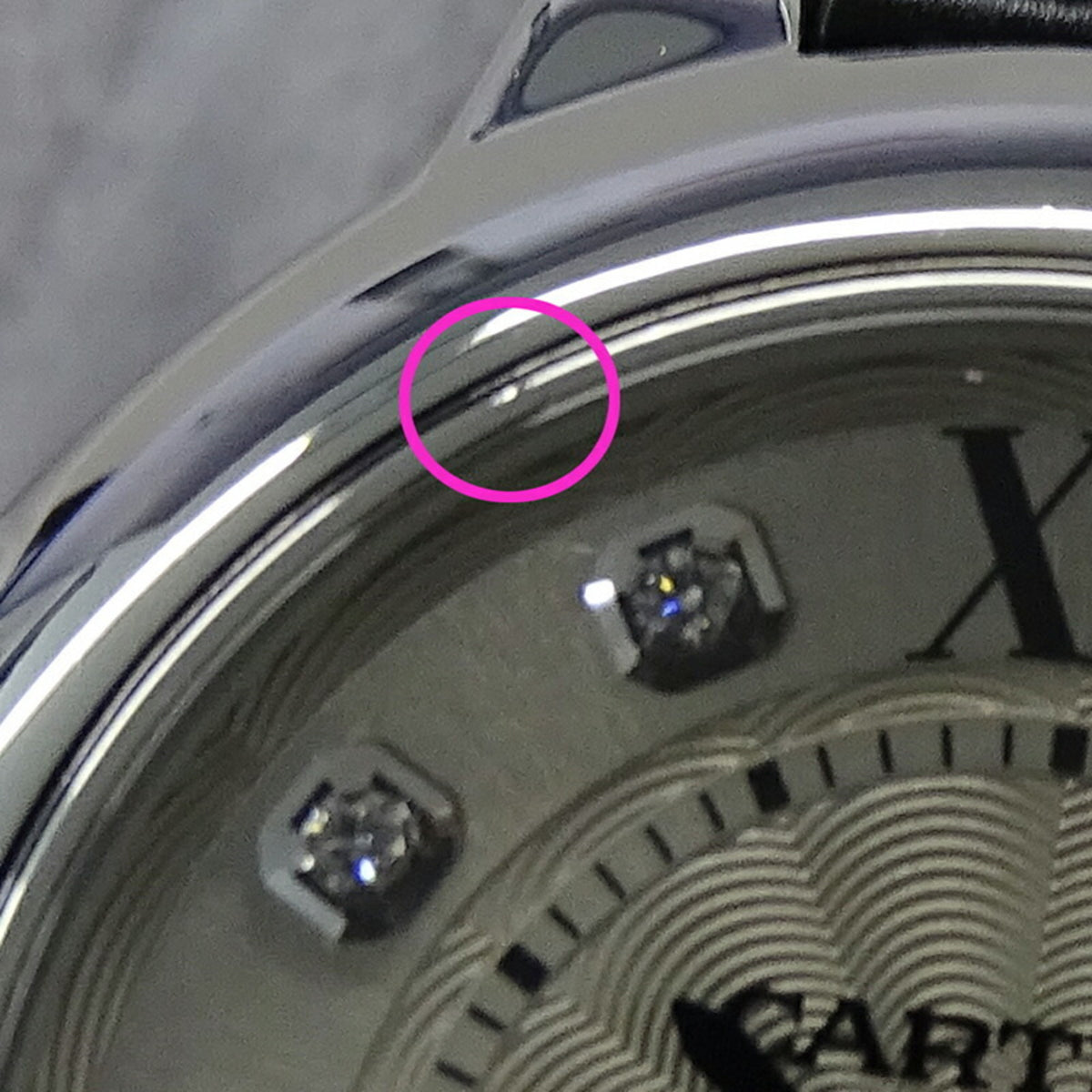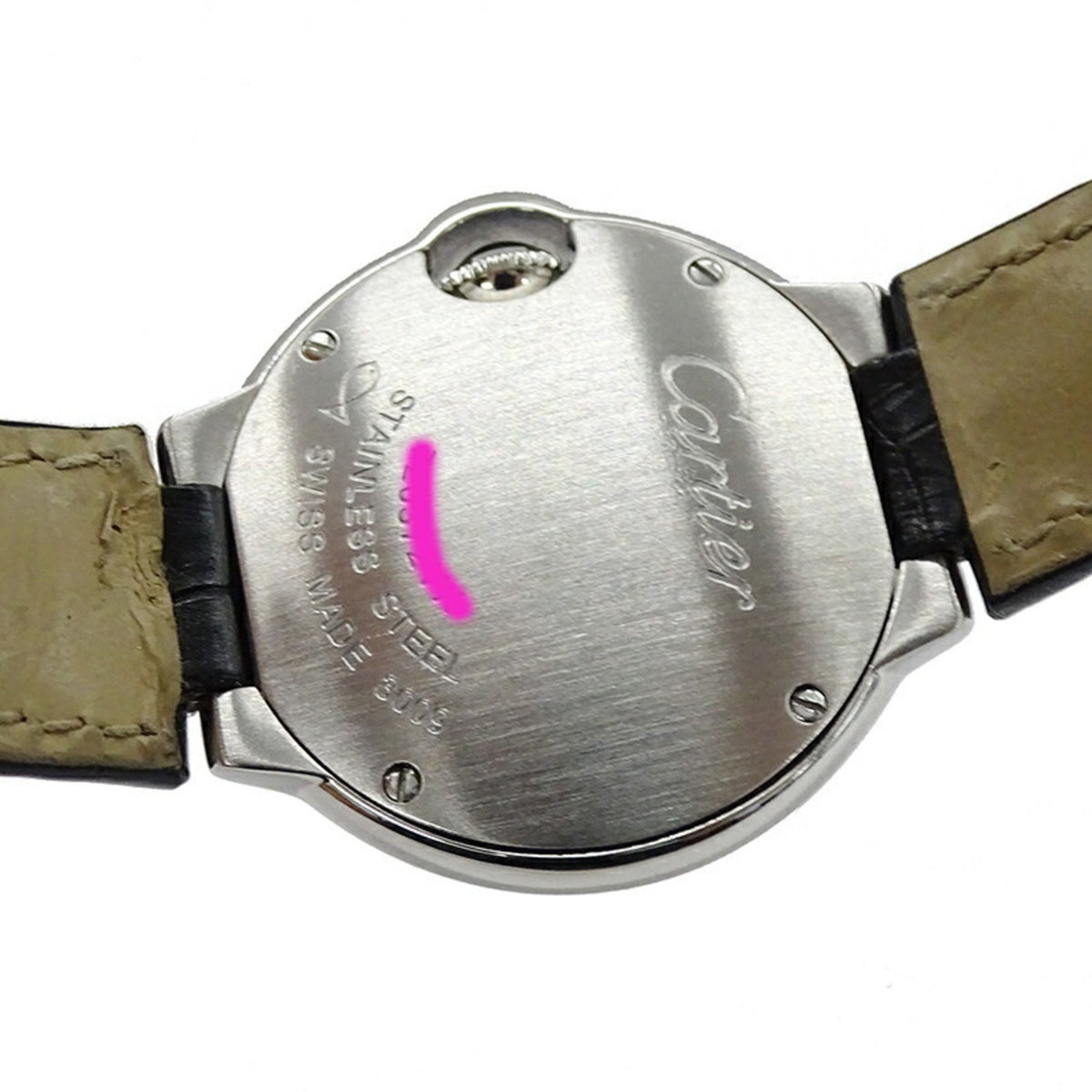 Gebrauchte Cartier Damenuhr Ballon Bleu 11P Diamant Quarz Edelstahl SS Leder W4BB0008 Rund Silber Schwarz Poliert