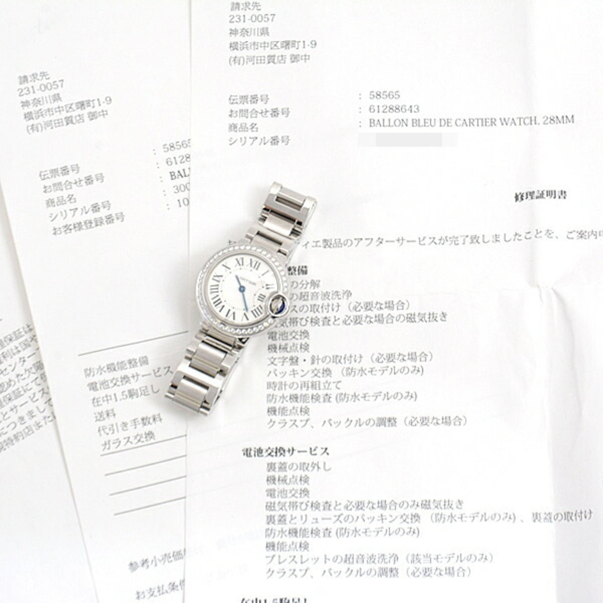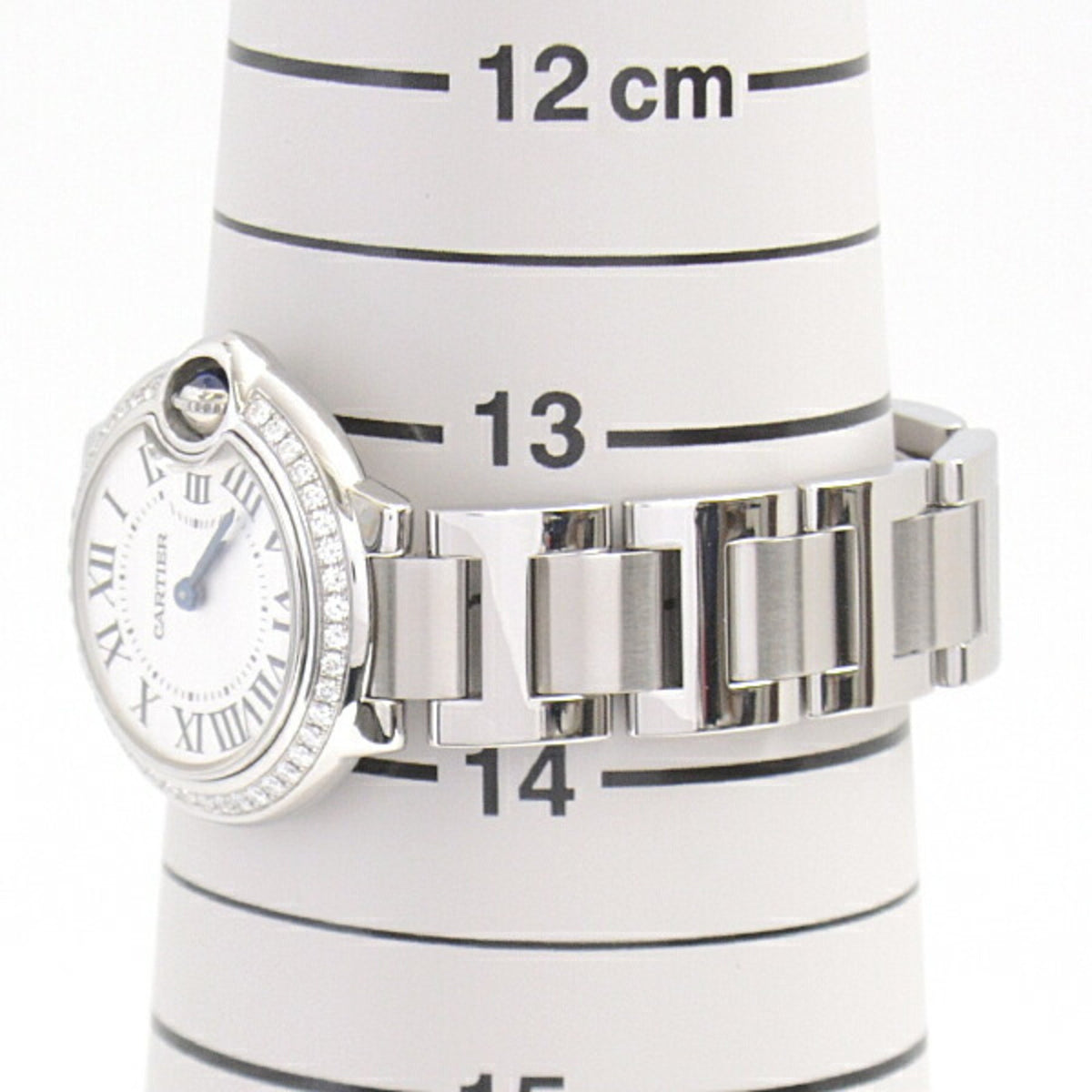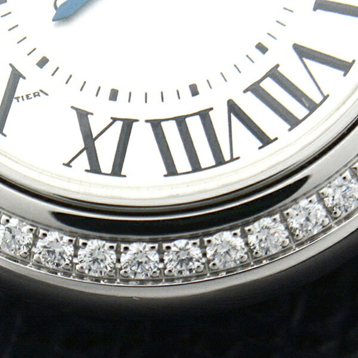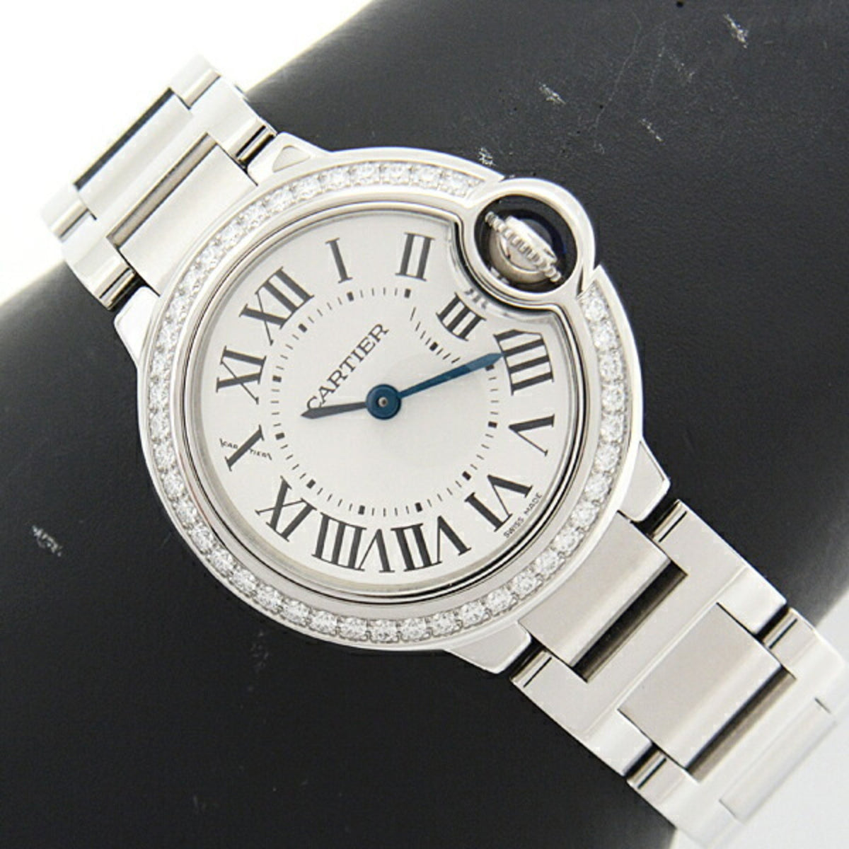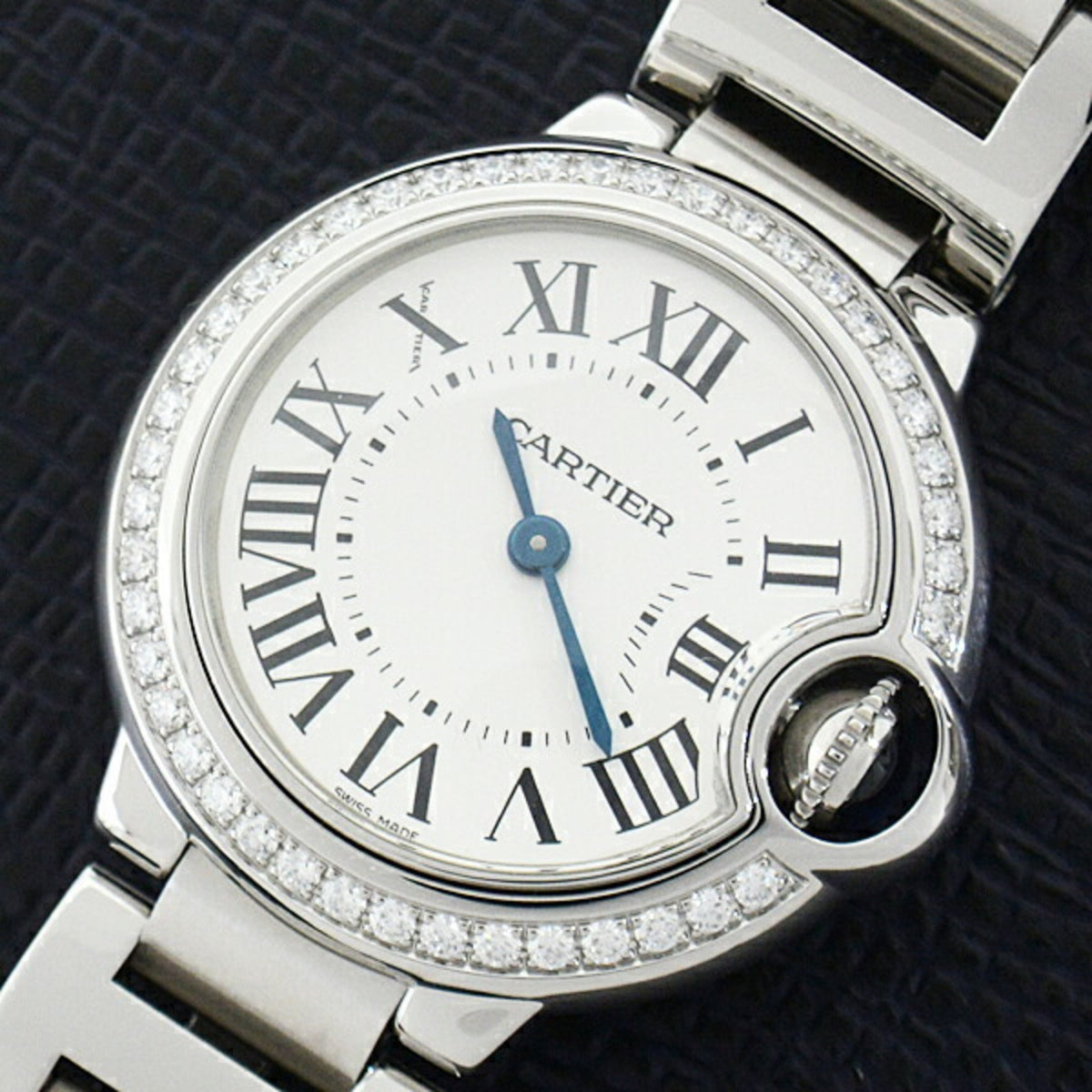 Gebrauchte Cartier Damenuhr Ballon Bleu SM Diamantlünette batteriebetrieben silbernes Zifferblatt Edelstahl SS W4BB0015