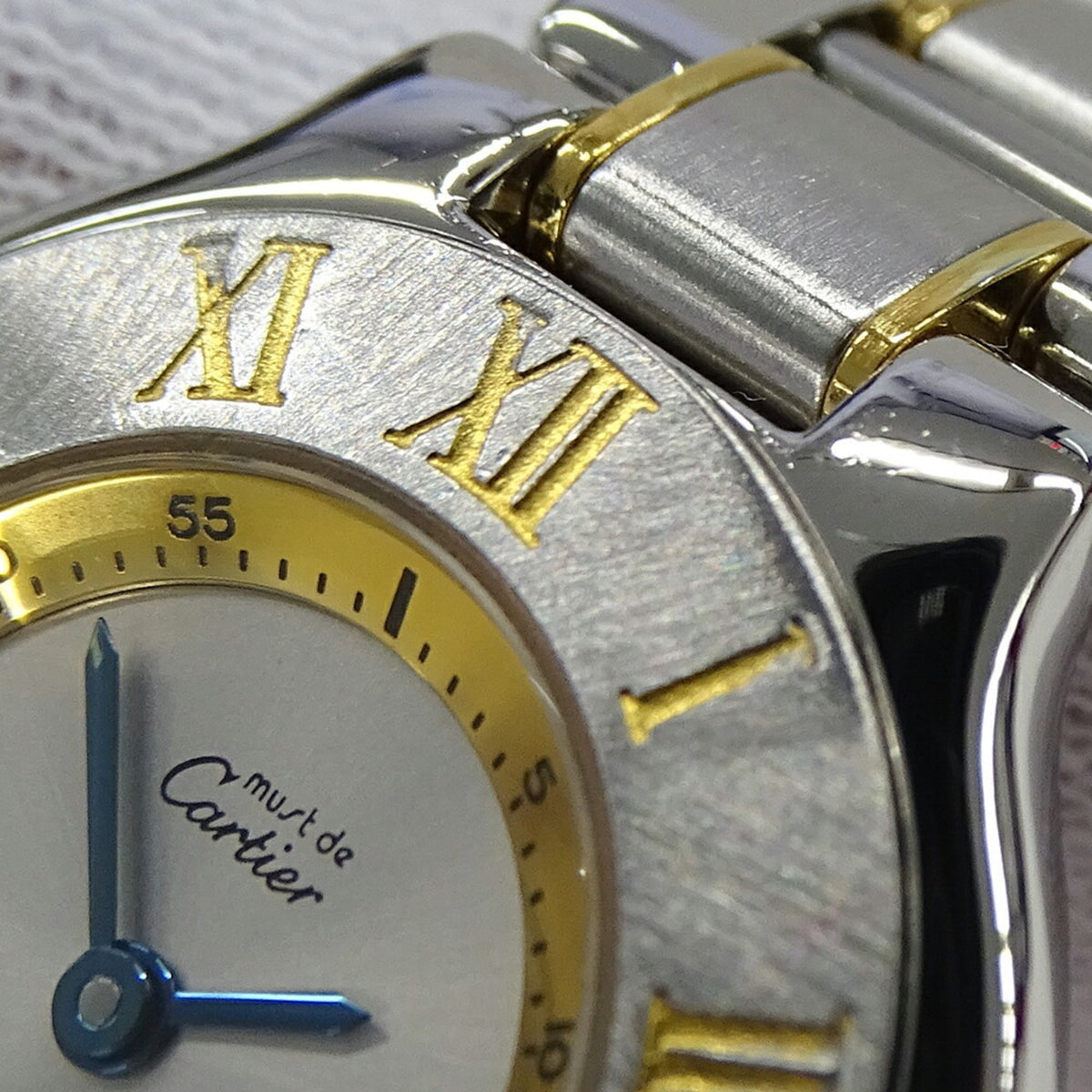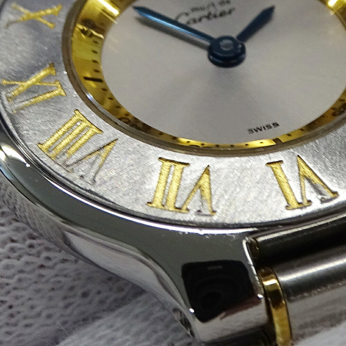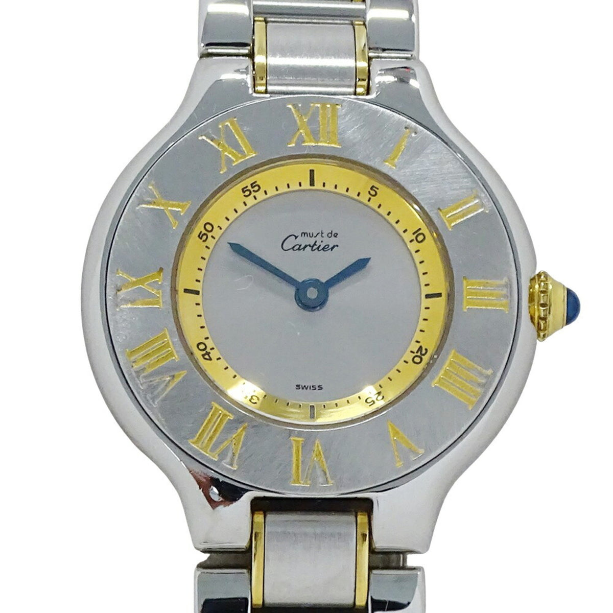 Gebrauchte Cartier Damenuhr Must 21 Vantianne Quarz Edelstahl SS GP W10073R6 Silber poliert