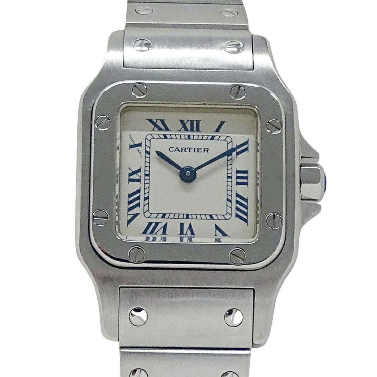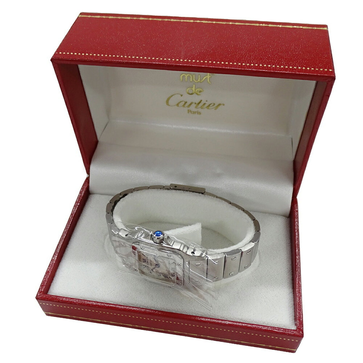 Gebrauchte Cartier Damenuhr Santos Galbe SM Quarz Edelstahl SS W20017D6 Silber Elfenbein poliert