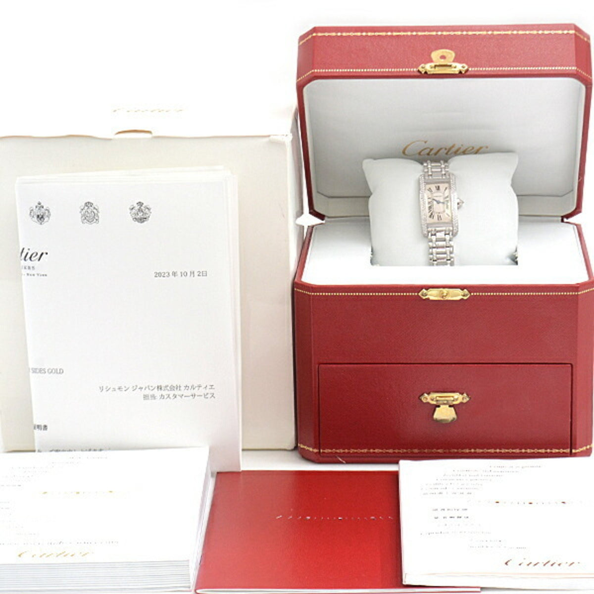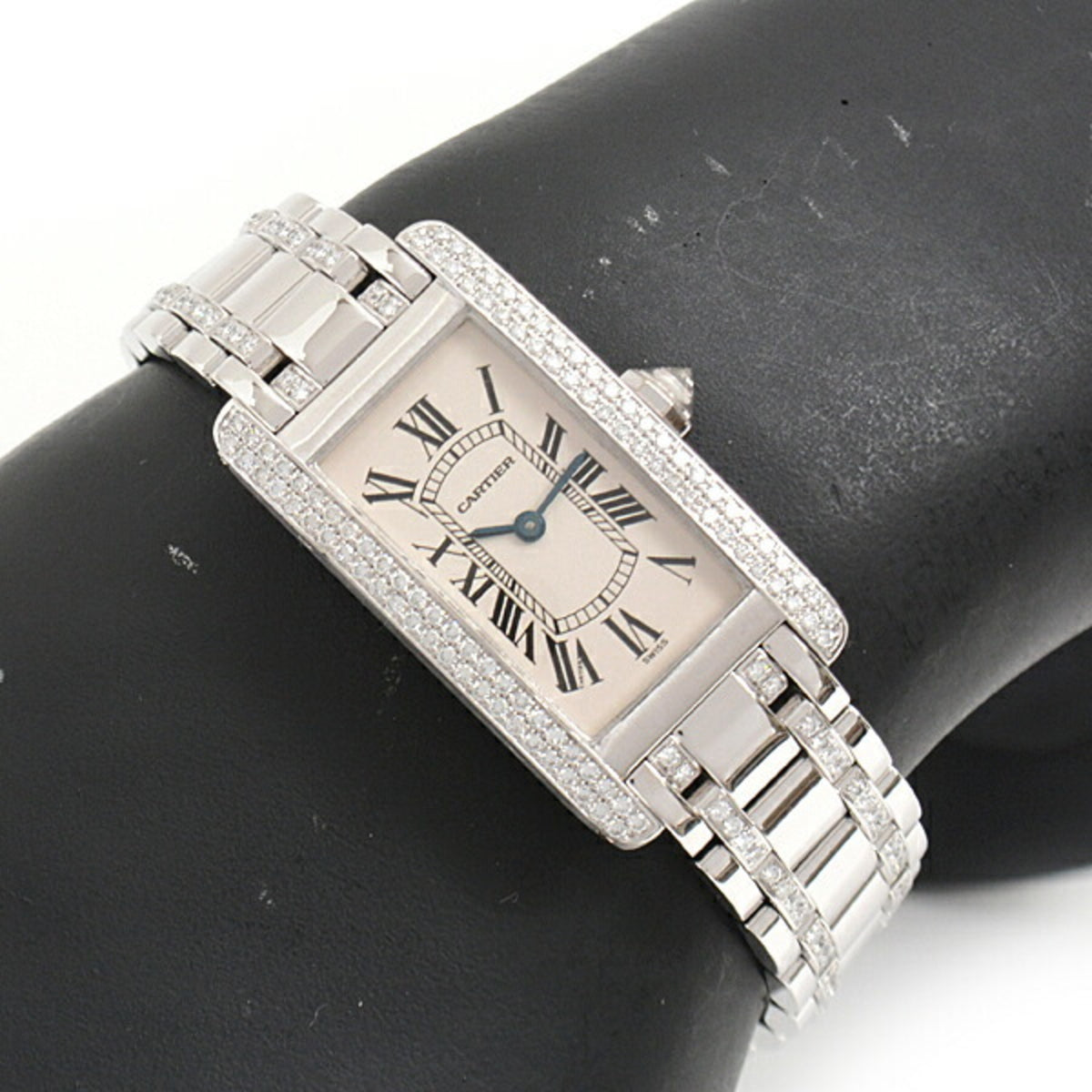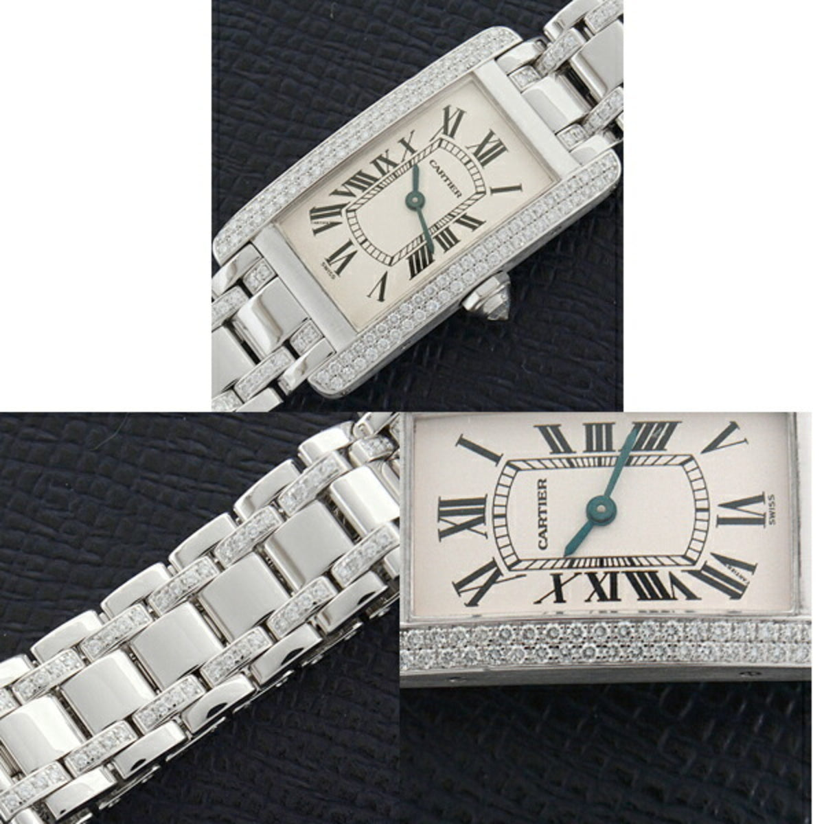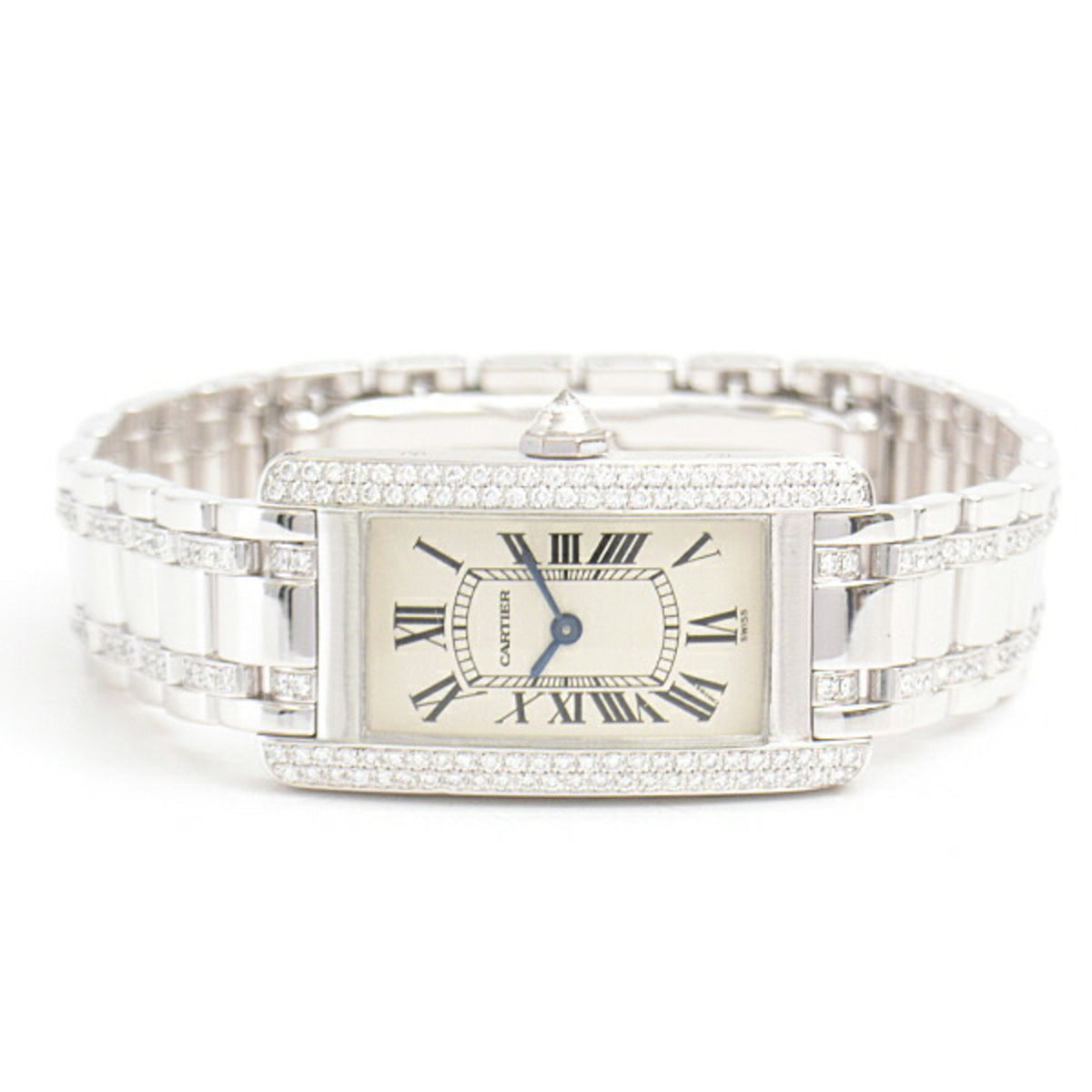 Gebrauchte Cartier Damenuhr Tank Americaine SM Echter Diamant Batteriebetrieben Weißgold 750WG Elfenbein Zifferblatt