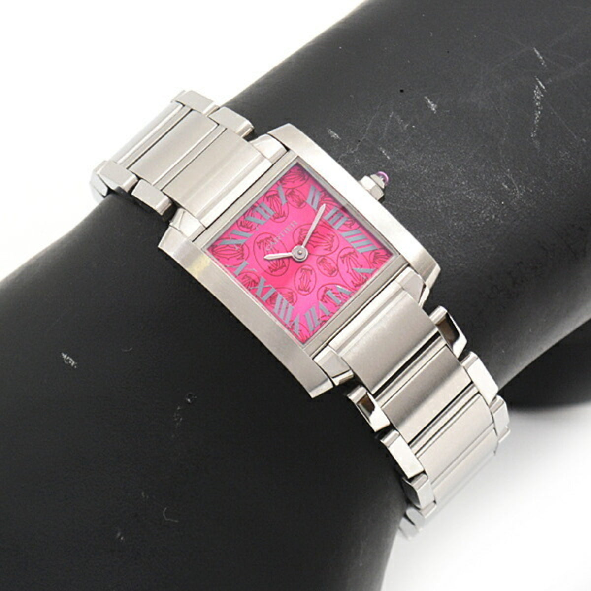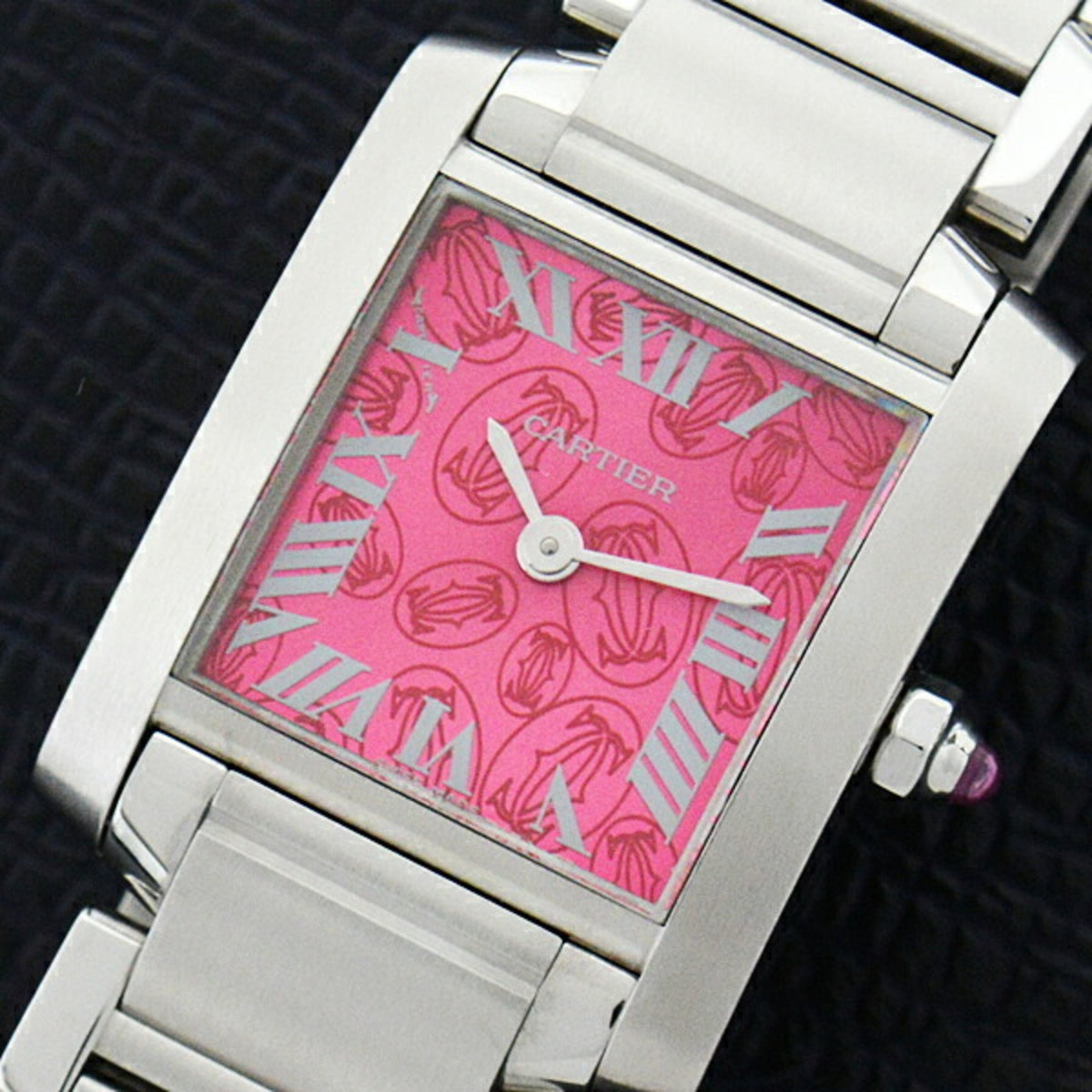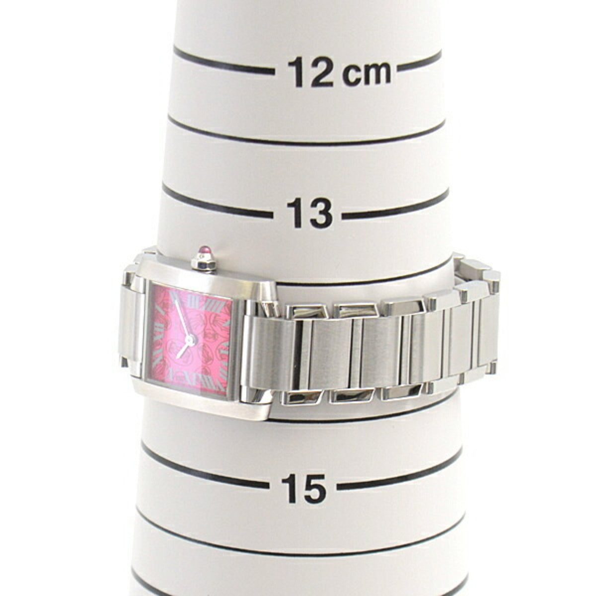 Gebrauchte Cartier Damenuhr Tank Francaise SM 2006 Limited Edition Himbeerrosa Zifferblatt batteriebetrieben Edelstahl SS W51030Q3