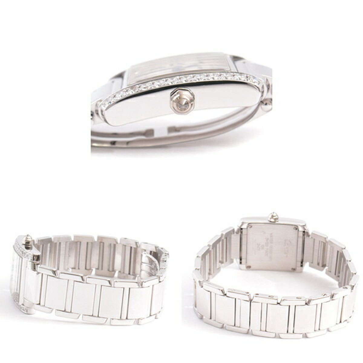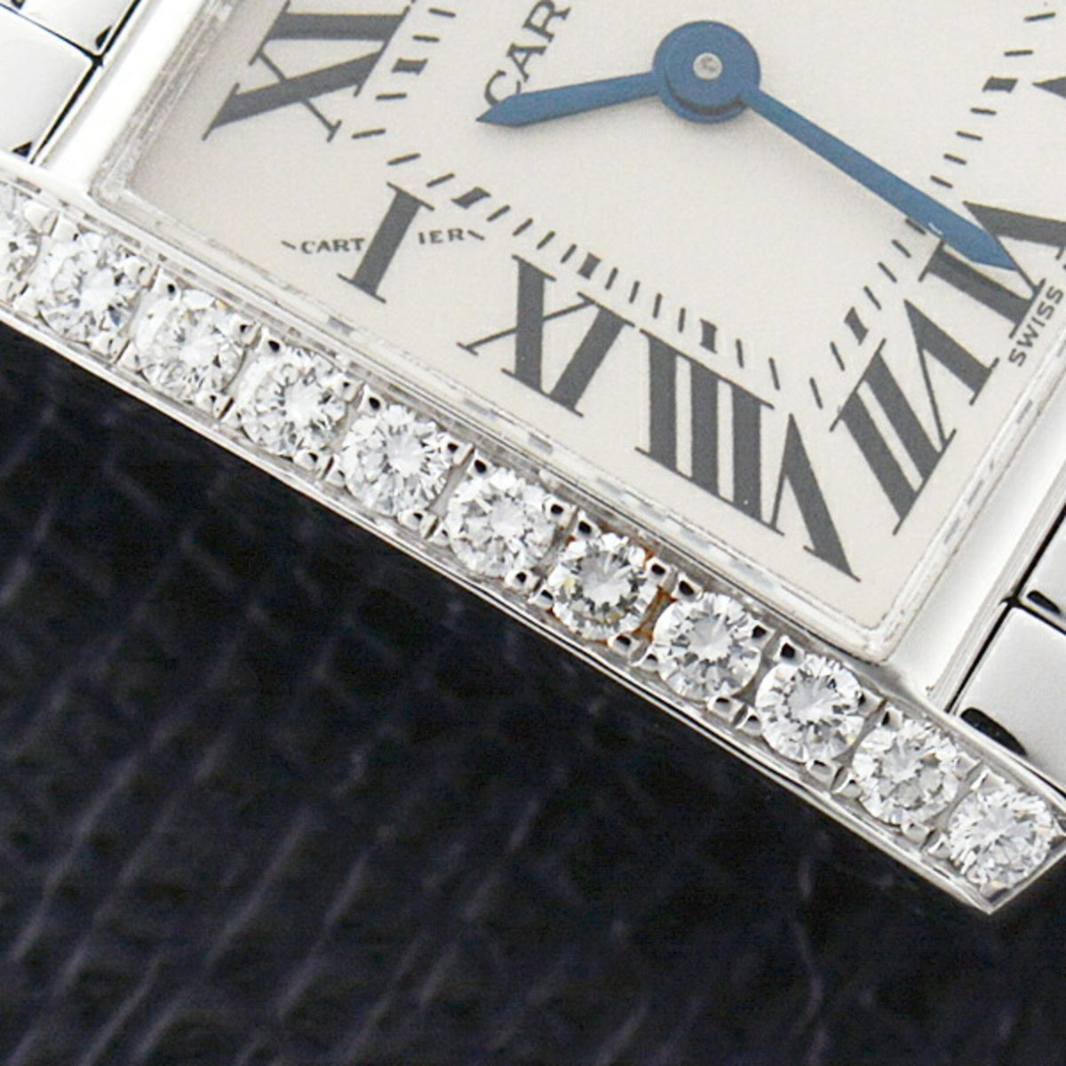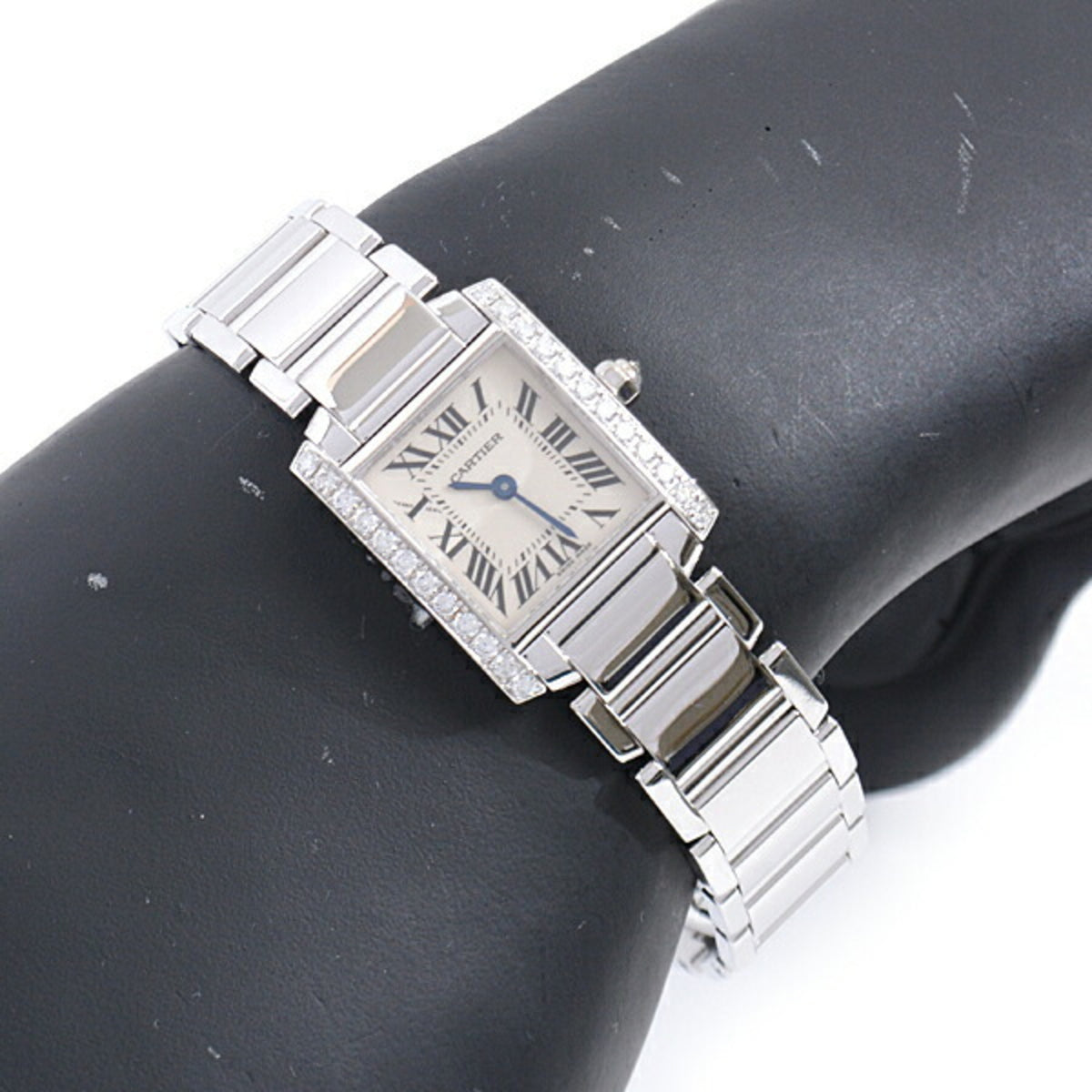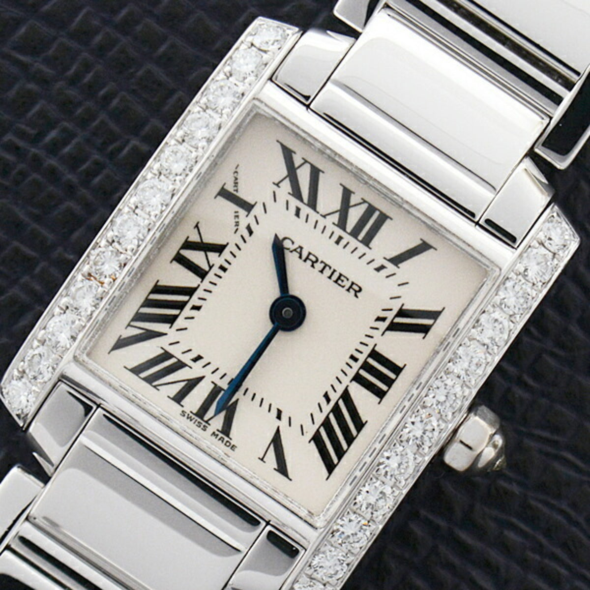 Gebrauchte Cartier Damenuhr Tank Francaise SM Echte Diamantlünette Batteriebetrieben Elfenbeinzifferblatt Weißgold 750WG W50012S3