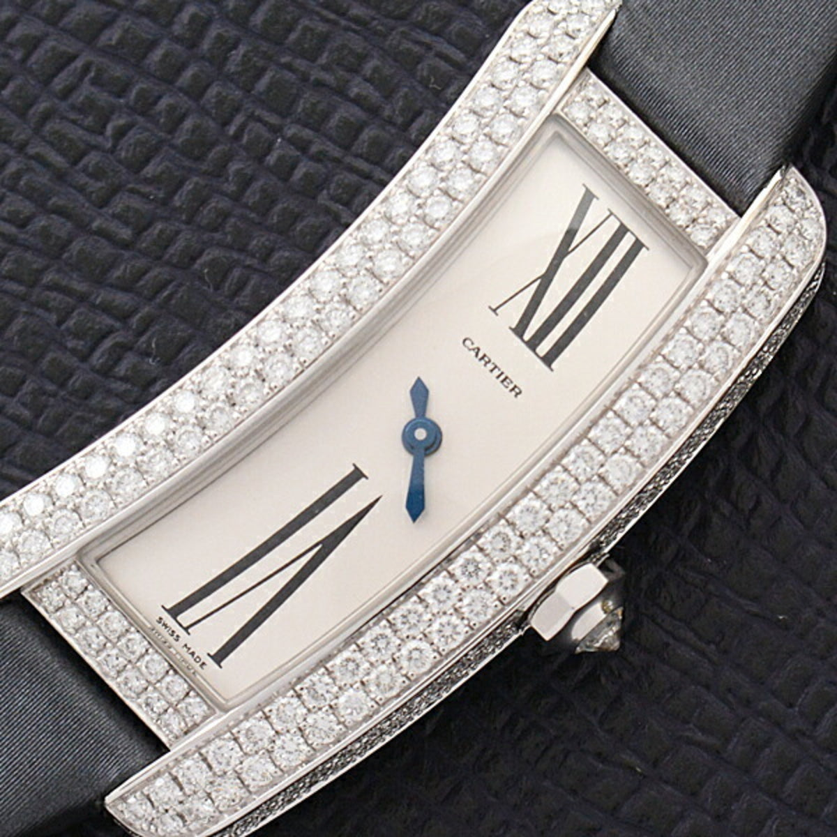 Gebrauchte Cartier Damenuhr Tank S Doppeldiamantlünette Weißgold Batteriebetrieben Silbernes Zifferblatt WJ300950 750WG