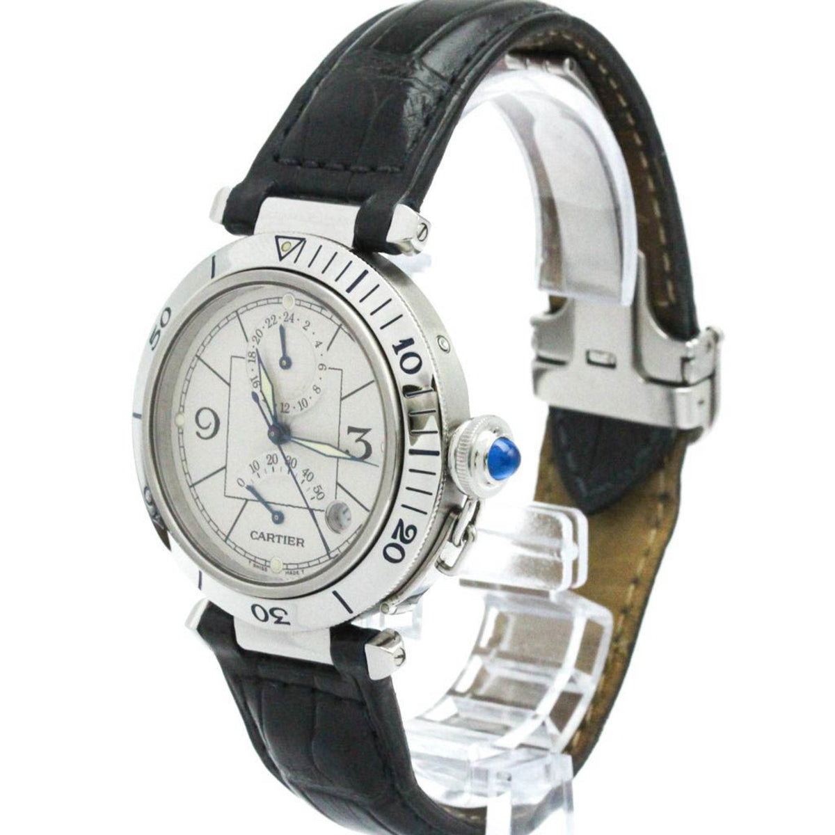 Gebrauchte, polierte Cartier Pasha 38 GMT Power Reserve Automatikuhr W3103755 BF582826